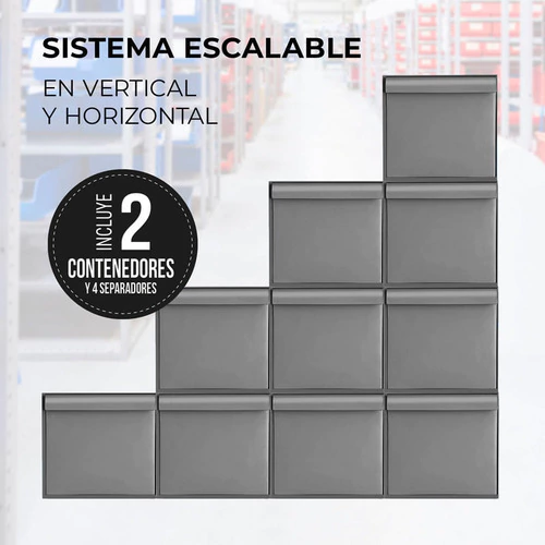 Este conjunto de cajones no solo te brinda una solución resistente y duradera para el almacenamiento sino que también mejora significativamente tu capacidad para mantener un espacio de trabajo organizado y adaptado a tus necesidades. Ideales para una variedad de usos, desde almacenar herramientas hasta gestionar inventarios grandes y pesados, estos cajones apilables son indispensables.