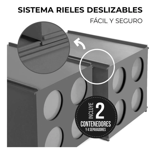 - Flexible y Adaptable: Incluyen 2 divisiones removibles para una organización personalizada.
