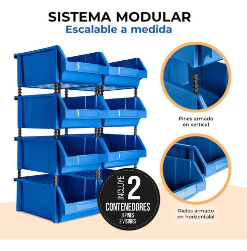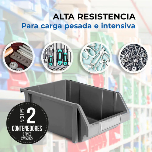 Este set de organizadores modulares es la solución perfecta para talleres, almacenes o cualquier área que requiera de una gestión de inventario eficiente y ordenada, mejorando la accesibilidad y la productividad del espacio de trabajo.