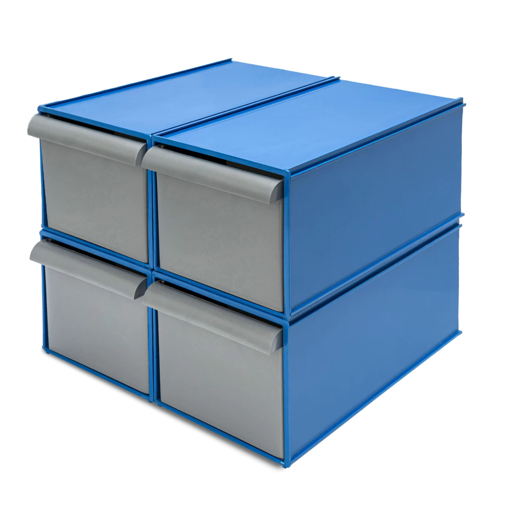 Ahorro de espacio: Su diseño apilable y modular optimiza el espacio de almacenamiento, permitiéndote mantener tu área de trabajo ordenada y libre de desorden.
