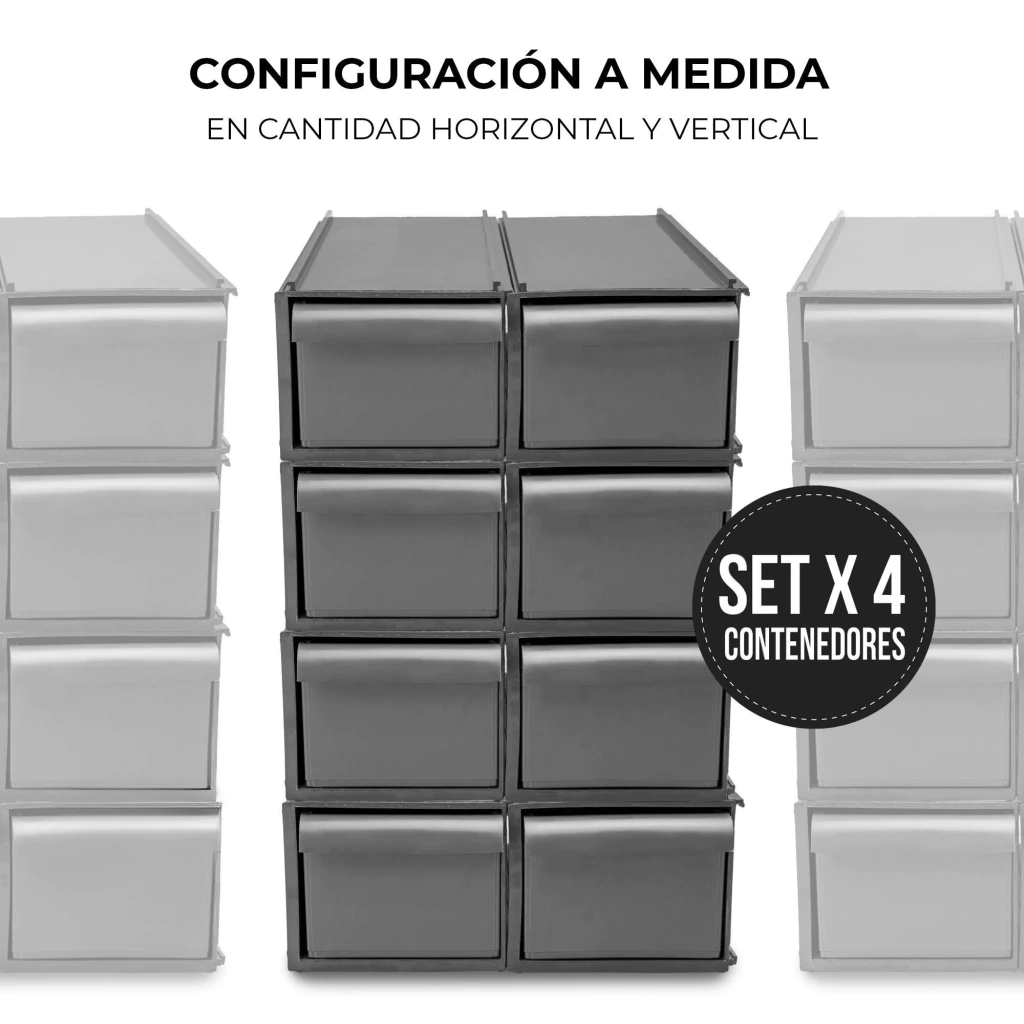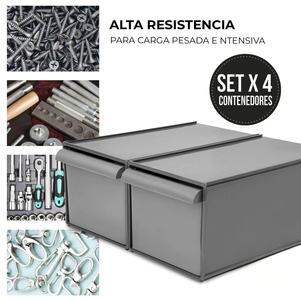 Transforma tu manera de organizar con nuestro set de 4 Cajones Organizadores Plásticos Modulares, cada uno capaz de soportar hasta 20 Kg de carga. Fabricados en polipropileno para trabajo pesado, estos cajones son ideales para el manejo de picking intensivo, organizando grandes inventarios y soportando cargas extrapesadas con facilidad.