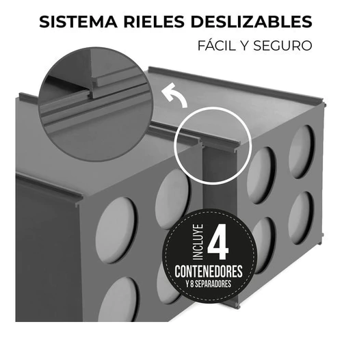 - Flexibilidad: 2 divisiones removibles en cada cajón para una organización personalizada.