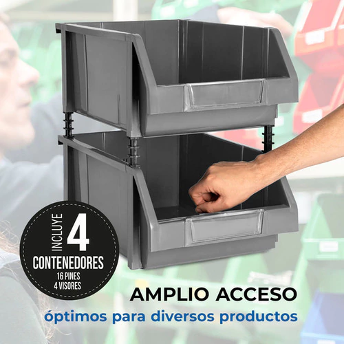 Estos organizadores son ideales para mejorar el orden y la accesibilidad en talleres, almacenes o cualquier espacio que requiera de una organización meticulosa de inventarios pesados. Su diseño modular facilita la personalización del espacio de almacenamiento, adaptándose a tus necesidades específicas.