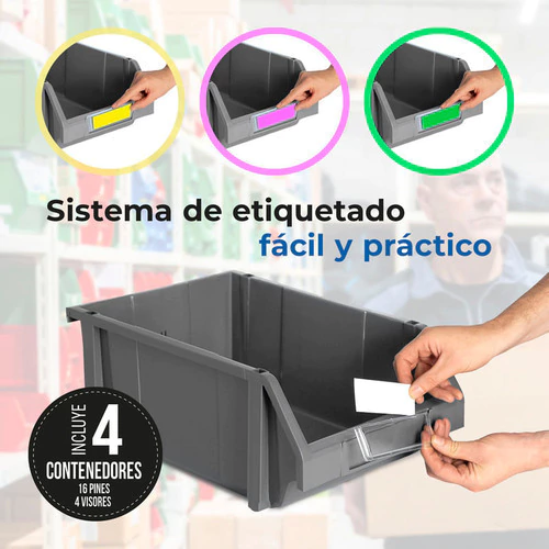 - Accesorios Prácticos: Equipados con 4 pines de apilamiento y un visor porta referencia para una identificación fácil de los contenidos.