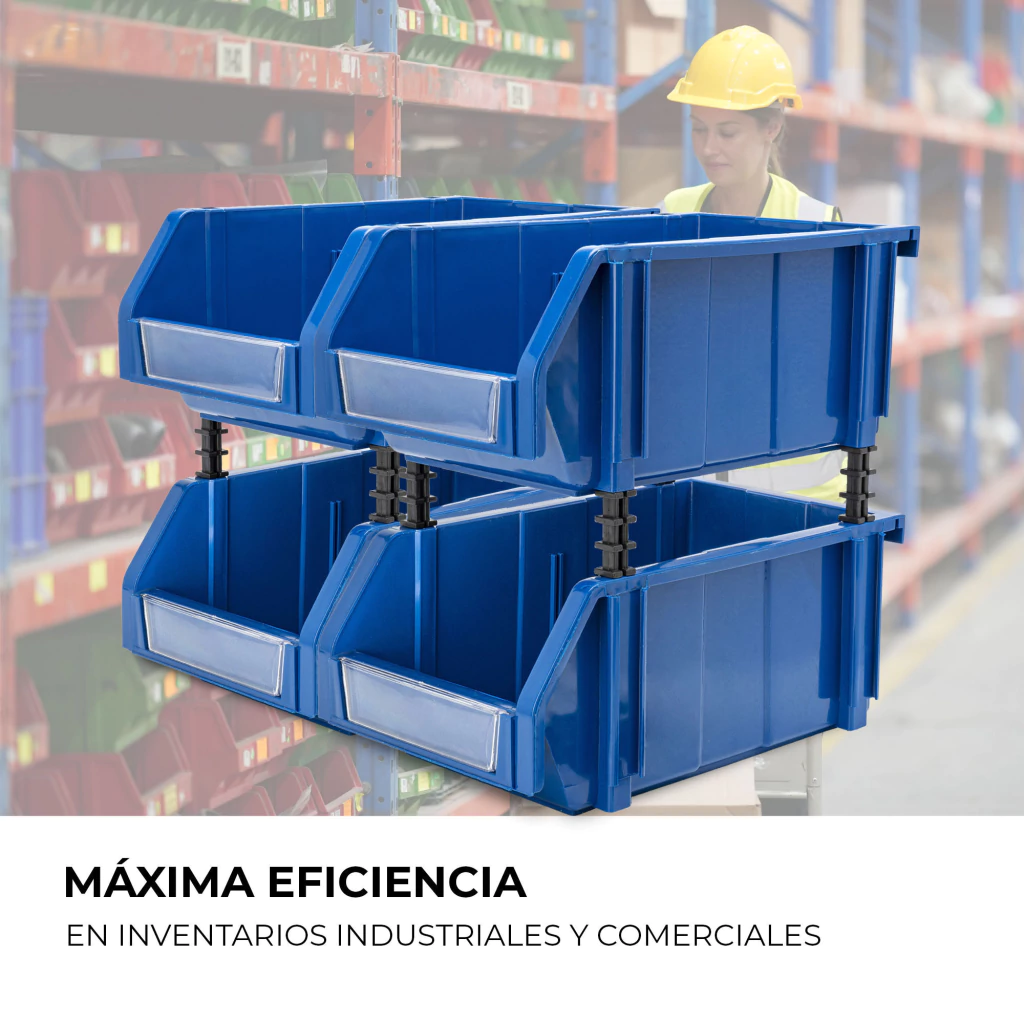 Maximiza la organización de tu espacio con nuestro exclusivo set de 4 Modulares Abiertos Organizadores Plásticos de Inventario, cada uno con una capacidad de carga de 40 Kg. Estos modulares, fabricados en polipropileno de alta resistencia, están diseñados para el manejo intensivo de picking y la organización eficiente de inventarios voluminosos y cargas extrapesadas. Con dimensiones de 35cm de largo, 20cm de ancho y 15cm de alto, y una capacidad de apilamiento total de 400 Kg, ofrecen una solución robusta y versátil para cualquier entorno de trabajo.