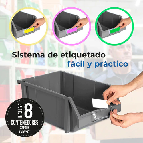 - Accesorios Funcionales: Incluye 4 pines de apilamiento y un visor porta referencia para una fácil identificación de los contenidos.