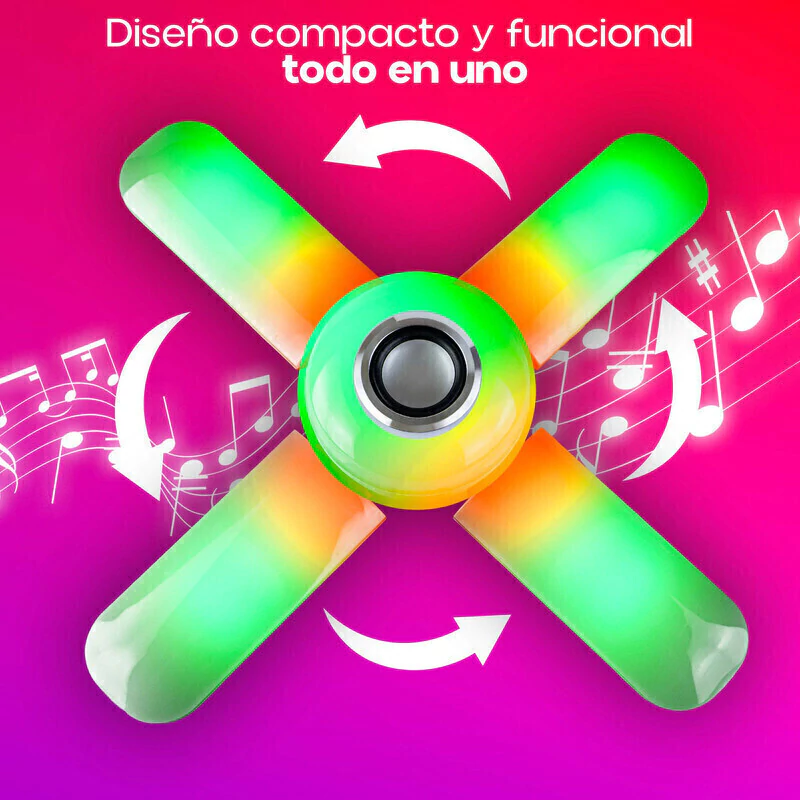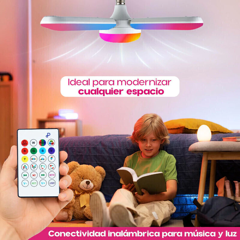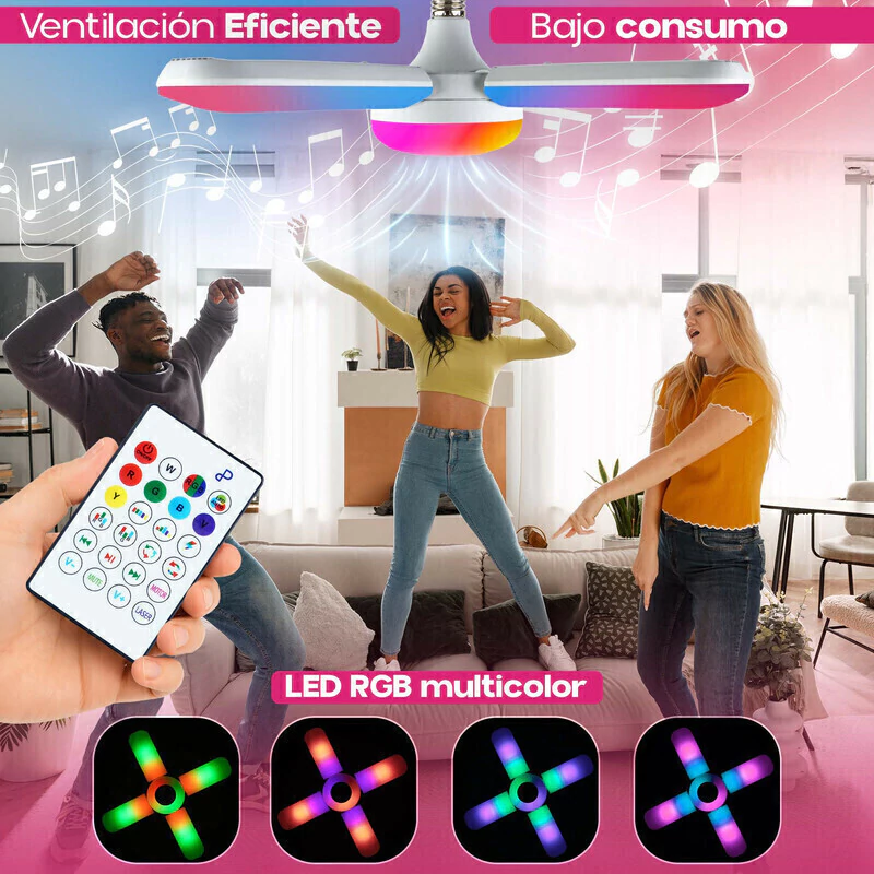 Bombillo Ventilador RGB LED 4 Aspas con Parlante y Control