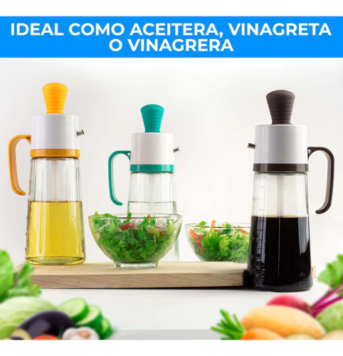3 en 1 Diseño Único: Cuenta con cepillo de silicona, gotero y boquilla para vertido preciso. ¡Es la aceitera definitiva!