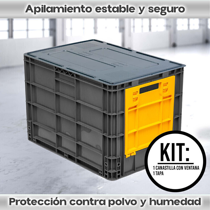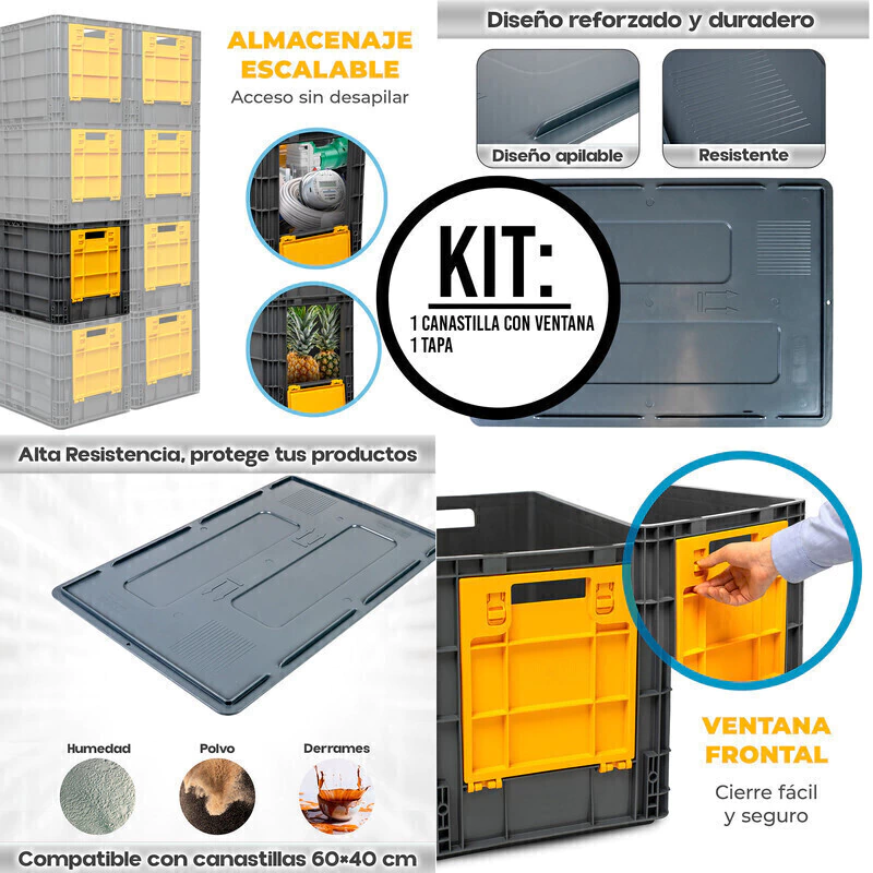 Optimiza tu hogar, taller o negocio con esta Canastilla Plástica Multiusos Apilable con Ventana y Tapa, diseñada para brindarte almacenamiento práctico, seguro y visualmente ordenado. Su diseño robusto permite apilar varias unidades sin comprometer la estabilidad, mientras que la ventana frontal abatible facilita el acceso sin tener que mover todo el conjunto.