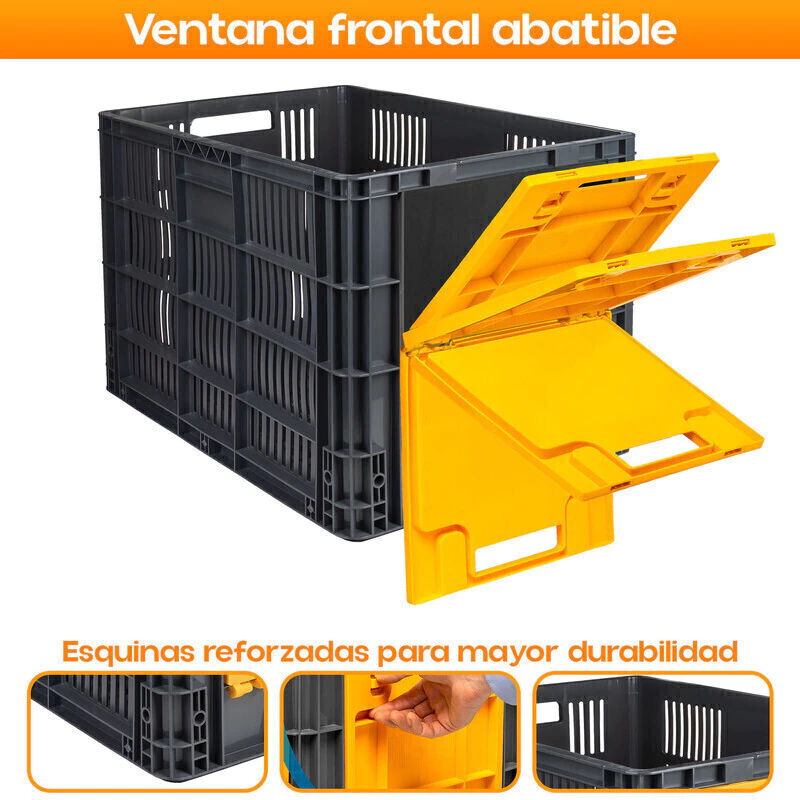 Organiza, transporta y accede fácilmente a tus productos con la Canastilla Plástica Multiusos con Ventana Frontal Perforada, diseñada para maximizar la eficiencia en almacenamiento industrial y comercial. Su ventana frontal abatible permite retirar o cargar productos sin necesidad de desmontar la pila, y sus paredes perforadas facilitan la ventilación del contenido.