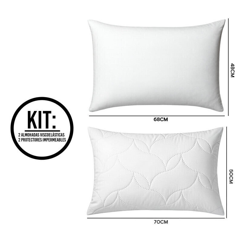 Combo Visco & Protección Natural: 2 Almohadas Viscoelásticas Ergonómicas + 2 Protectores Impermeables Algodón Rizo