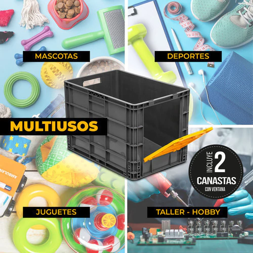 - 2 Canastillas Plásticas Multiusos Apilables con Ventana
