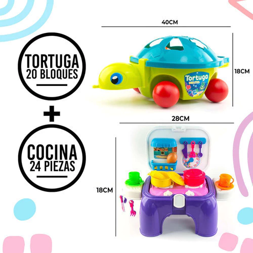 Impulsa la creatividad y el desarrollo cognitivo de tus pequeños con nuestro Combo Infantil: Tortuga Didáctica 20 pzas + Cocina 24 Pzas. Este conjunto, diseñado especialmente para el aprendizaje lúdico, está fabricado en Polipropileno, ofreciendo seguridad, durabilidad, y horas de entretenimiento educativo.