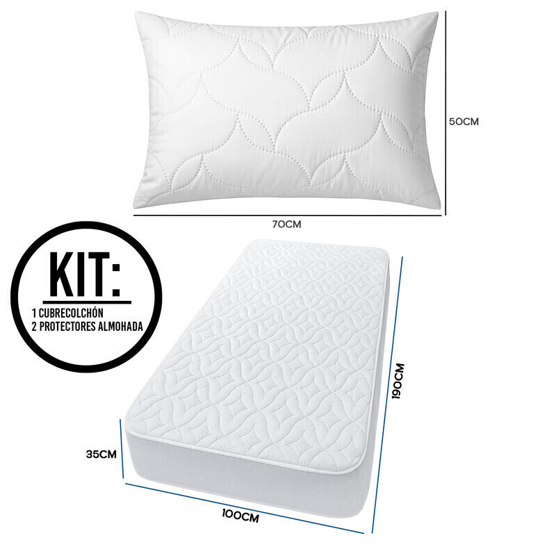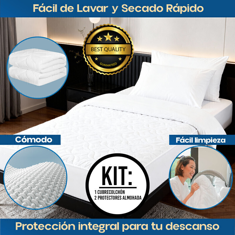 Protege tu cama de forma integral con este práctico combo diseñado para mantener tu colchón y almohadas siempre limpios, secos y cuidados. Perfecto para quienes buscan una solución funcional, fácil de mantener y con calidad comprobada.