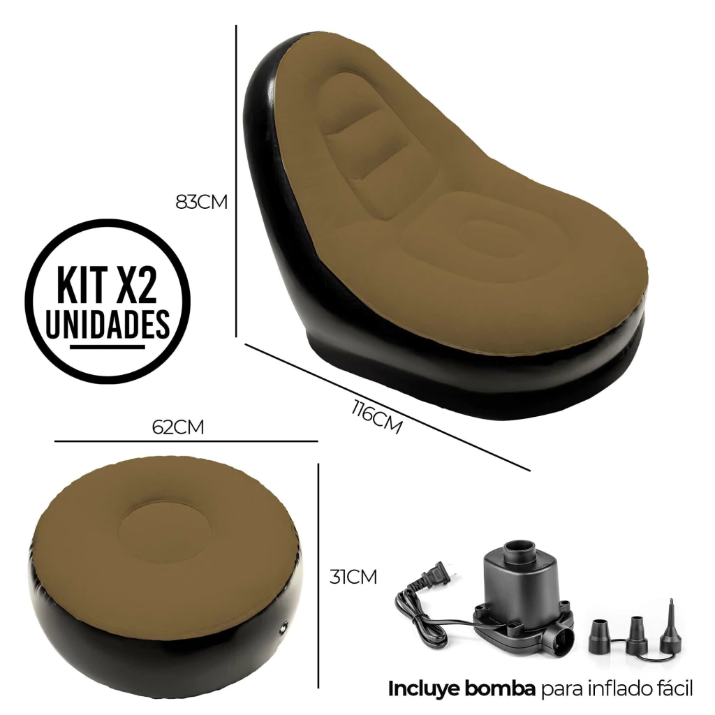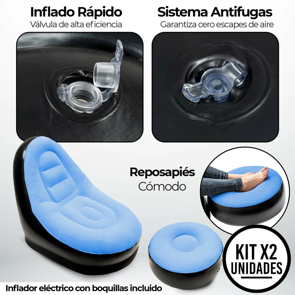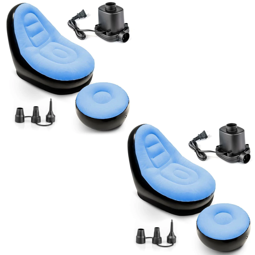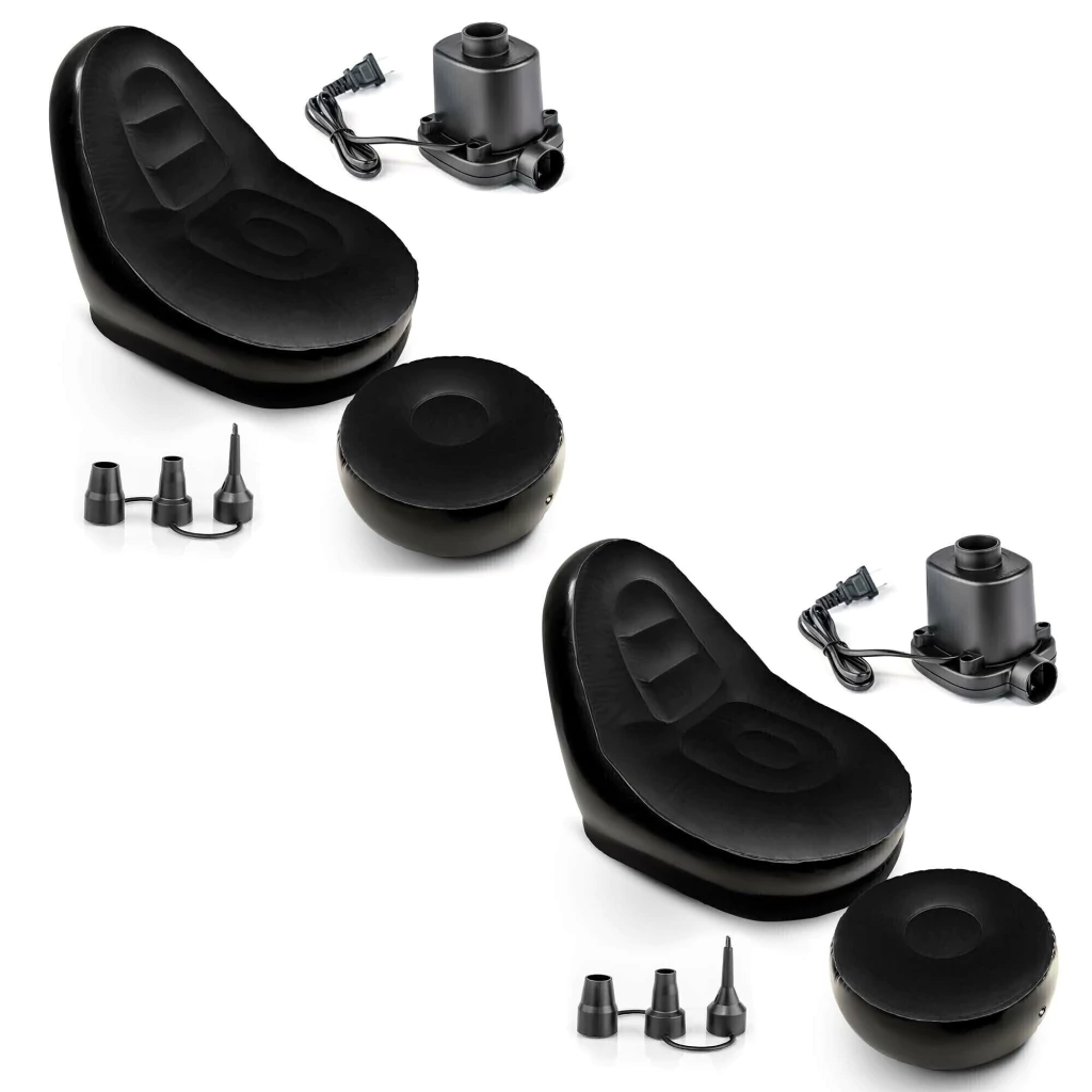 Set x2 Sofá Inflable Portátil con Reposapiés - Inflador Eléctrico: Doble Comodidad para Tus Momentos de Descanso