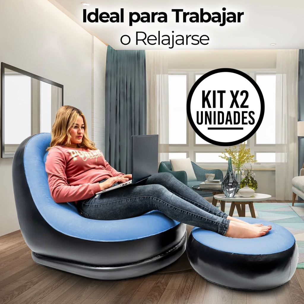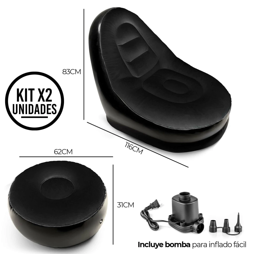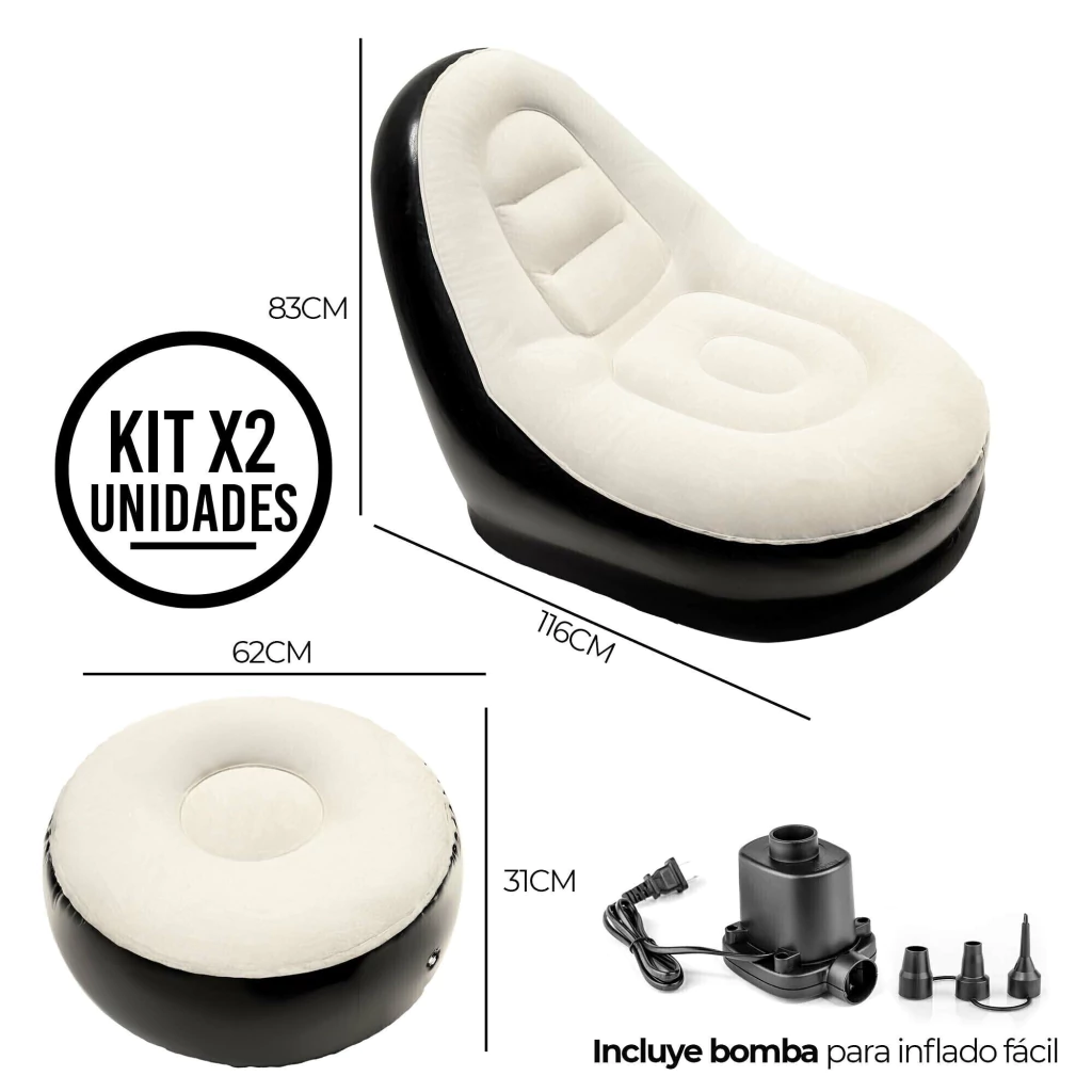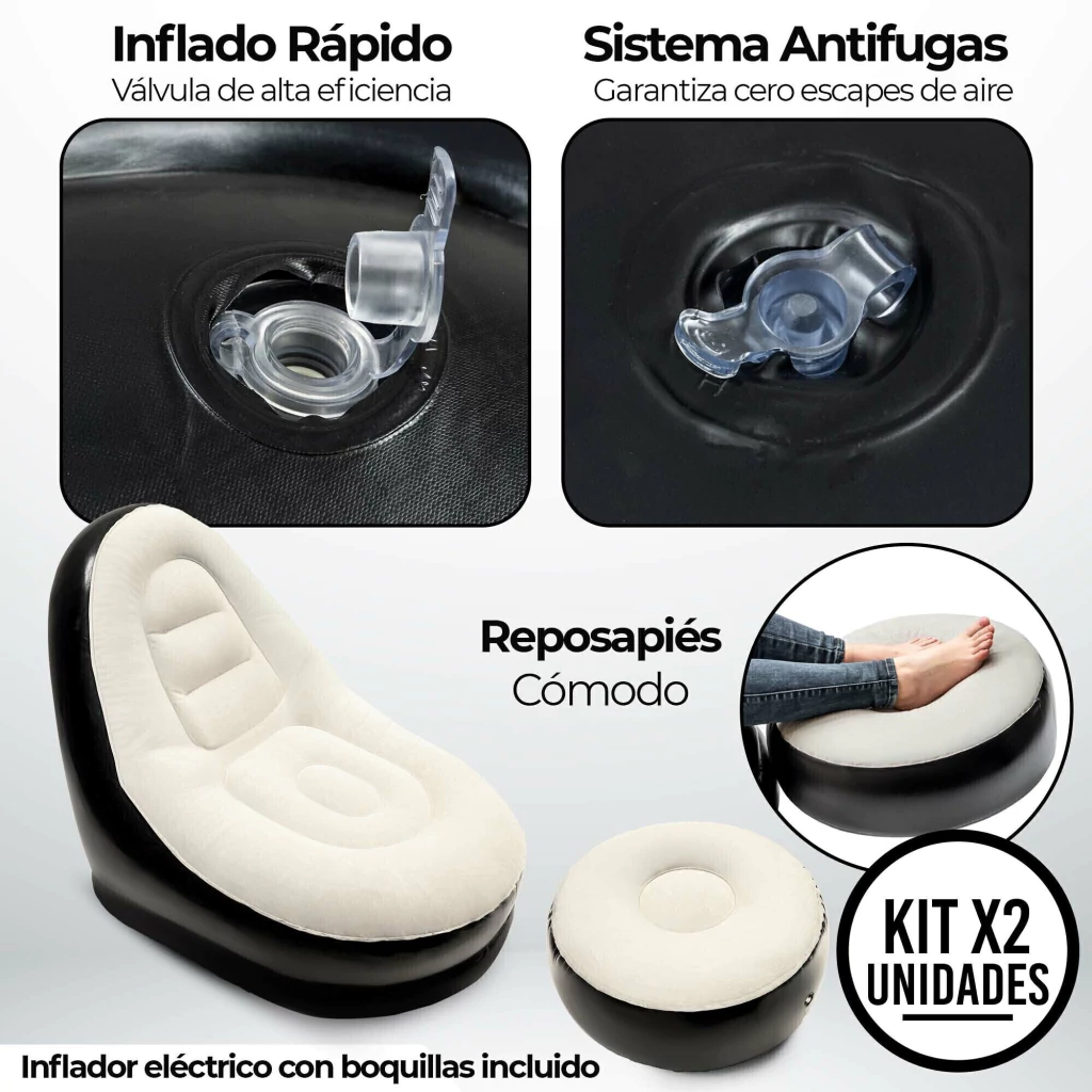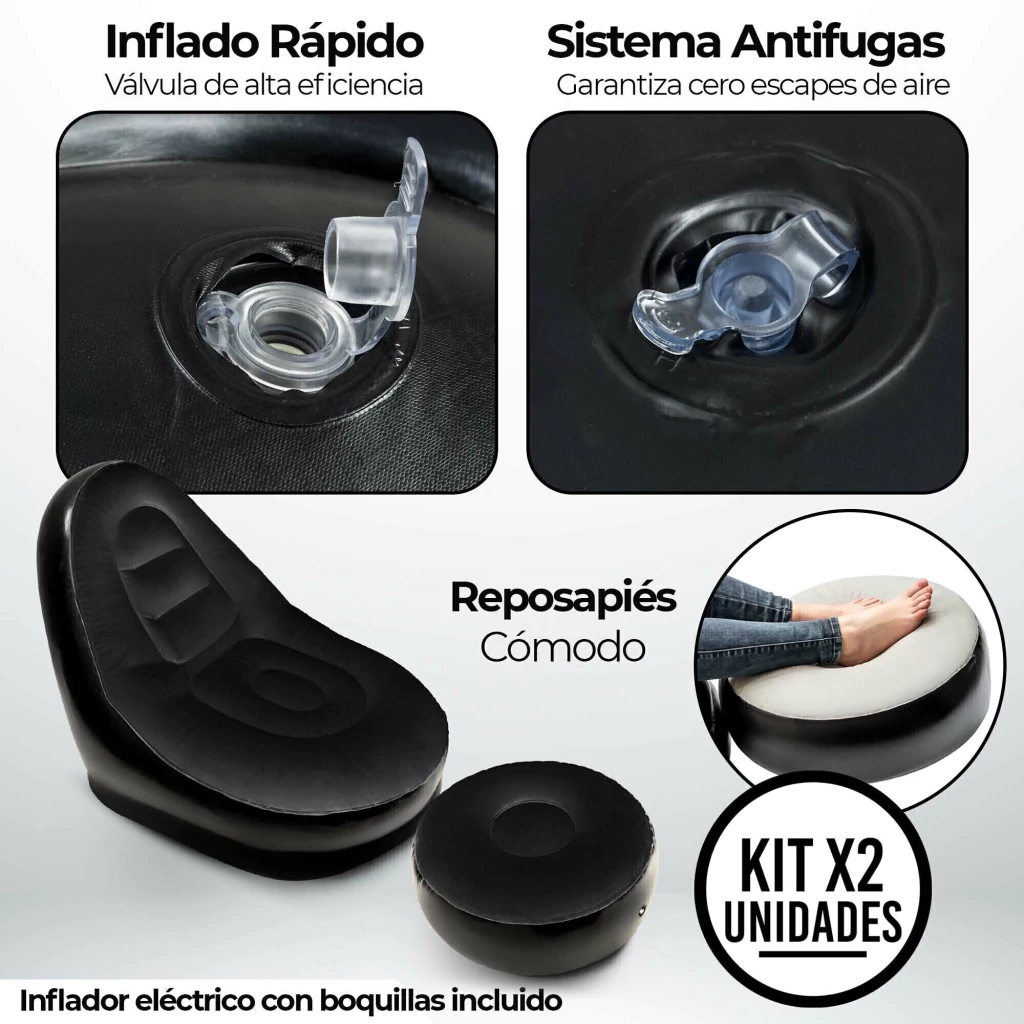 Set x2 Sofá Inflable Portátil con Reposapiés - Inflador Eléctrico: Doble Comodidad para Tus Momentos de Descanso