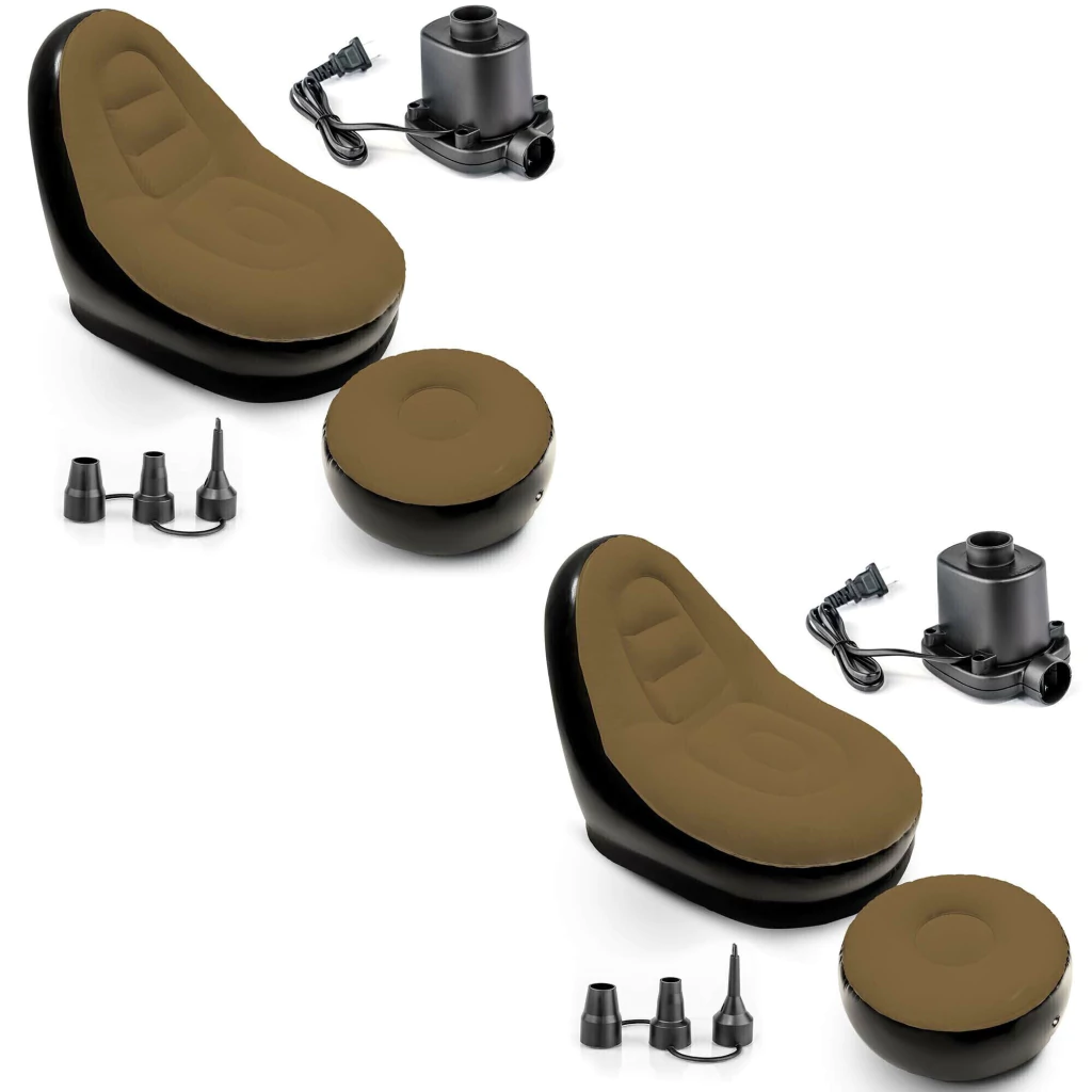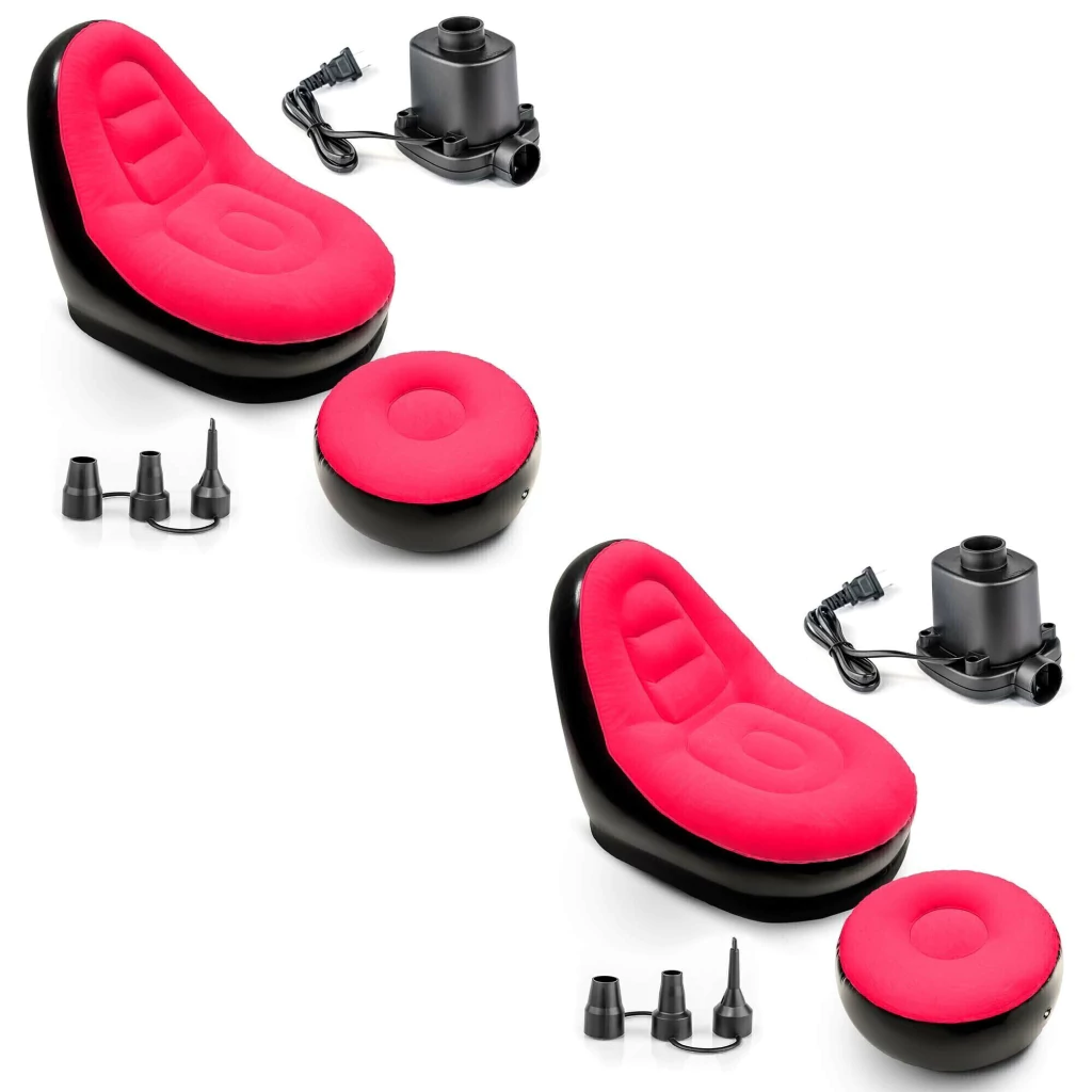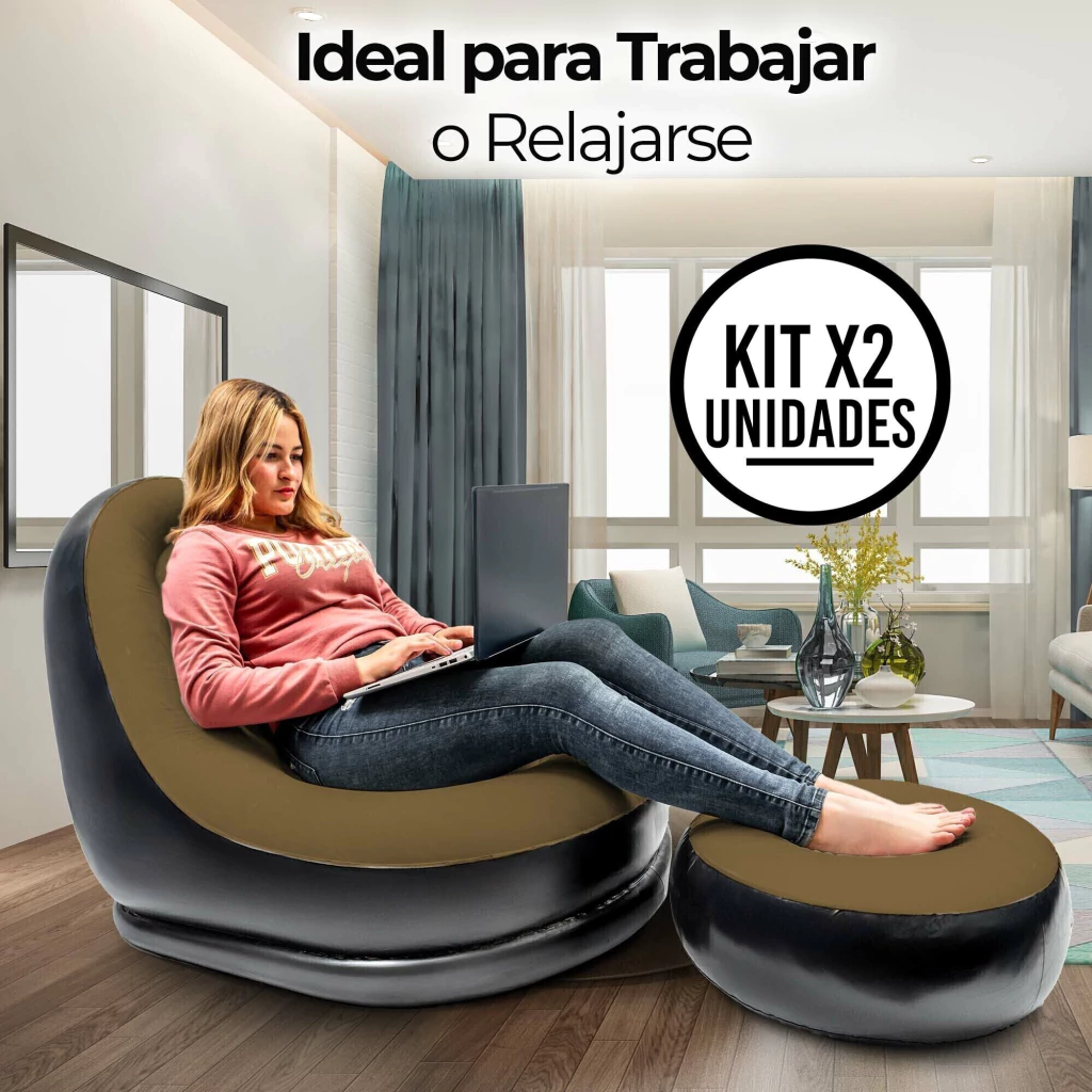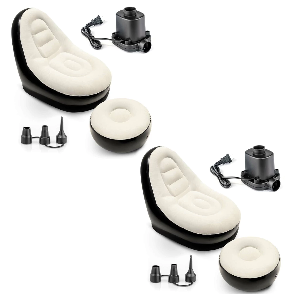 Set x2 Sofá Inflable Portátil con Reposapiés - Inflador Eléctrico: Doble Comodidad para Tus Momentos de Descanso