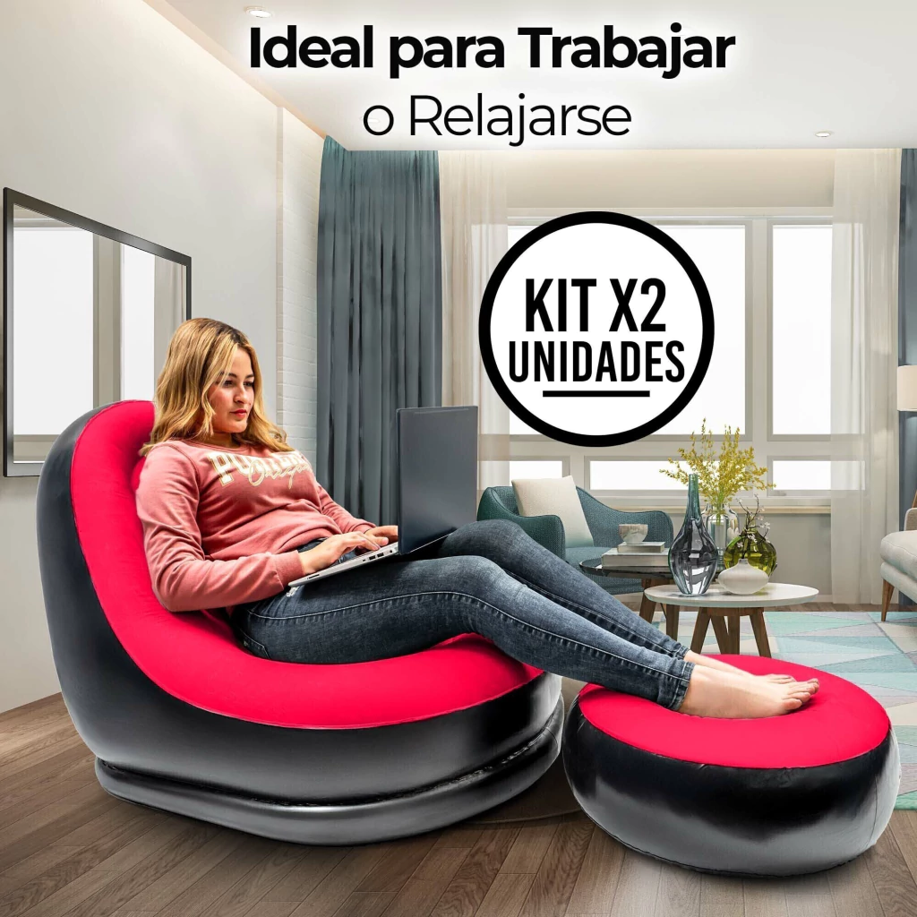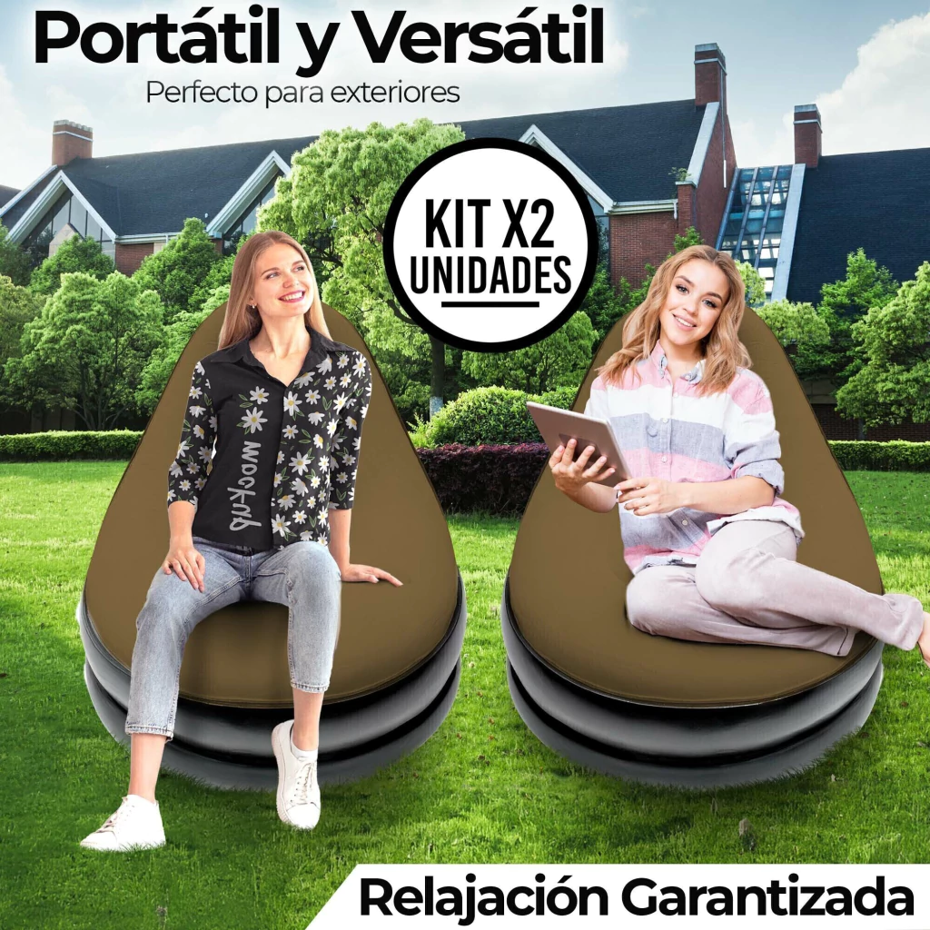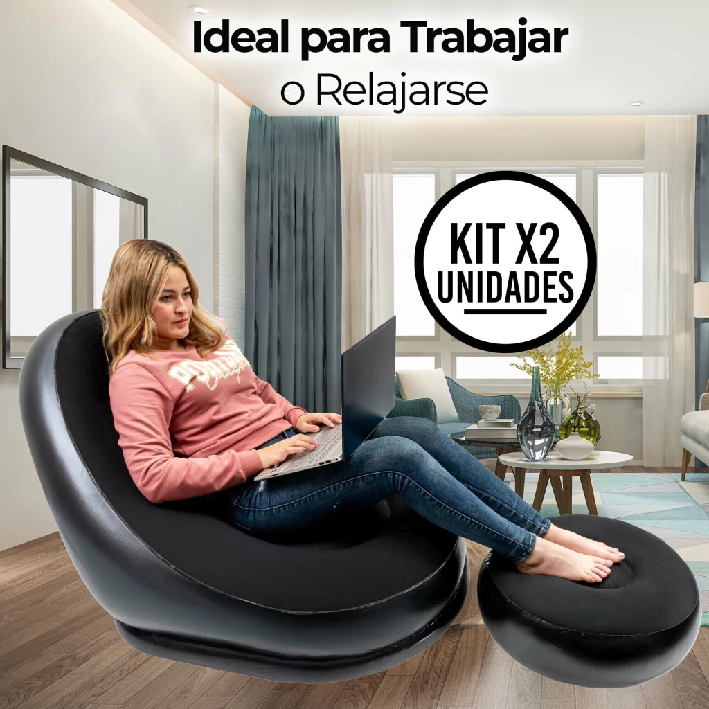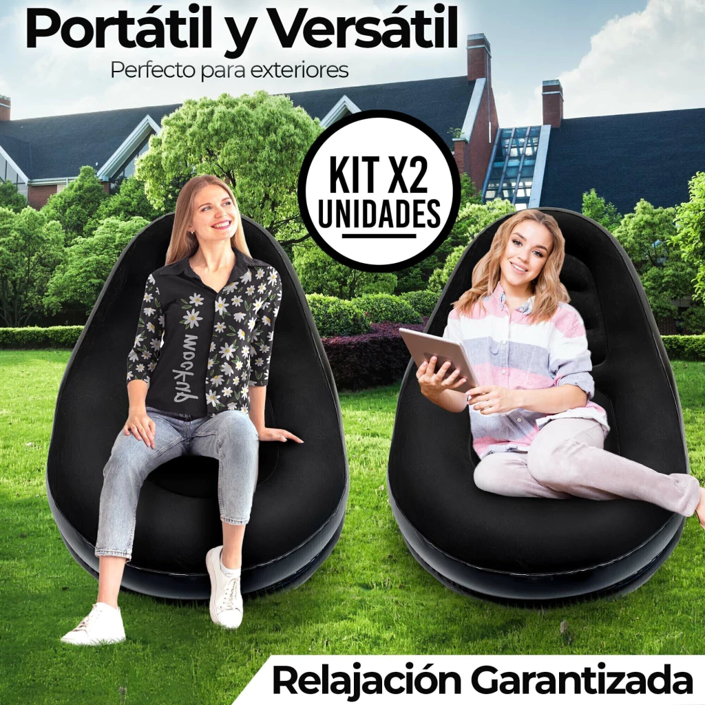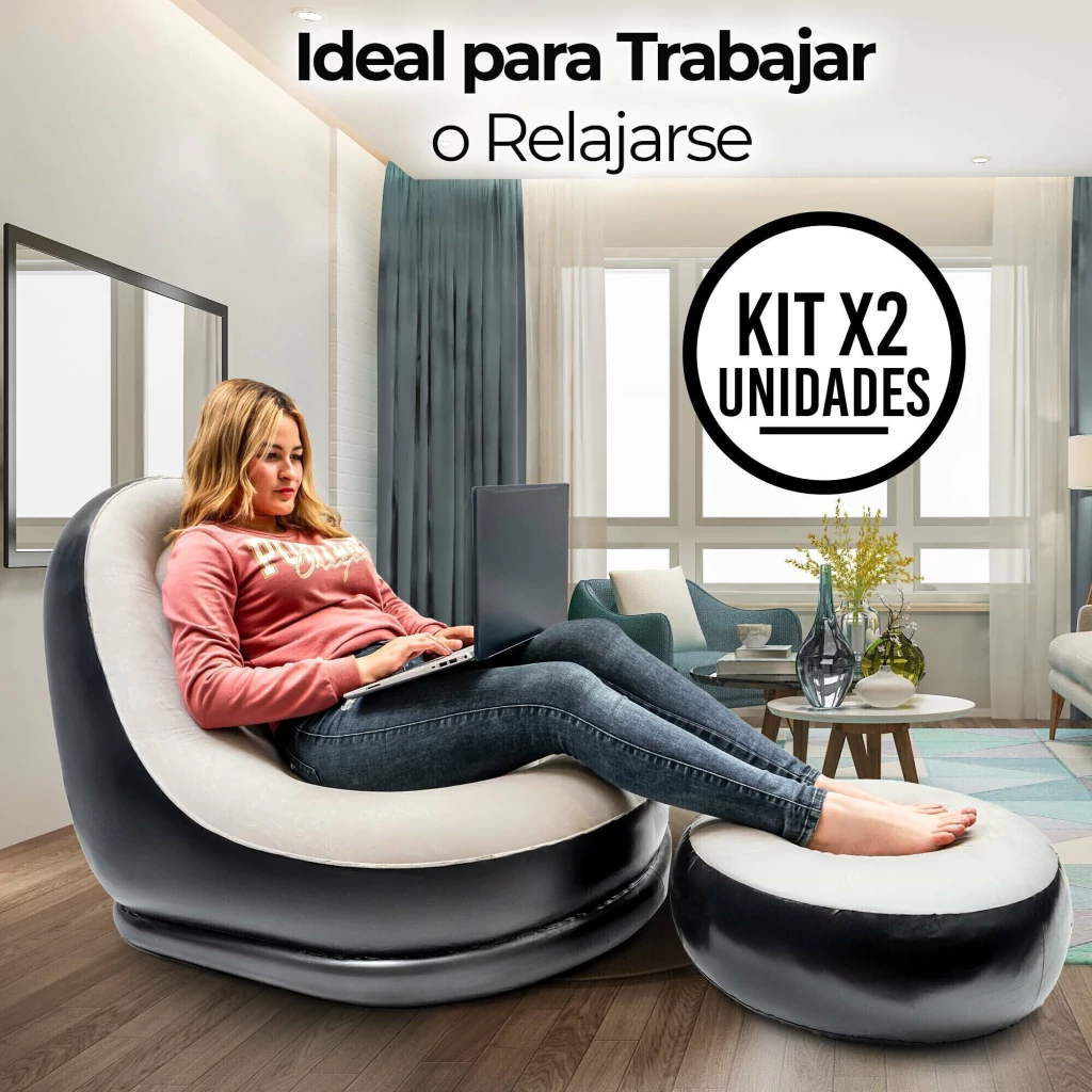 Set x2 Sofá Inflable Portátil con Reposapiés - Inflador Eléctrico: Doble Comodidad para Tus Momentos de Descanso