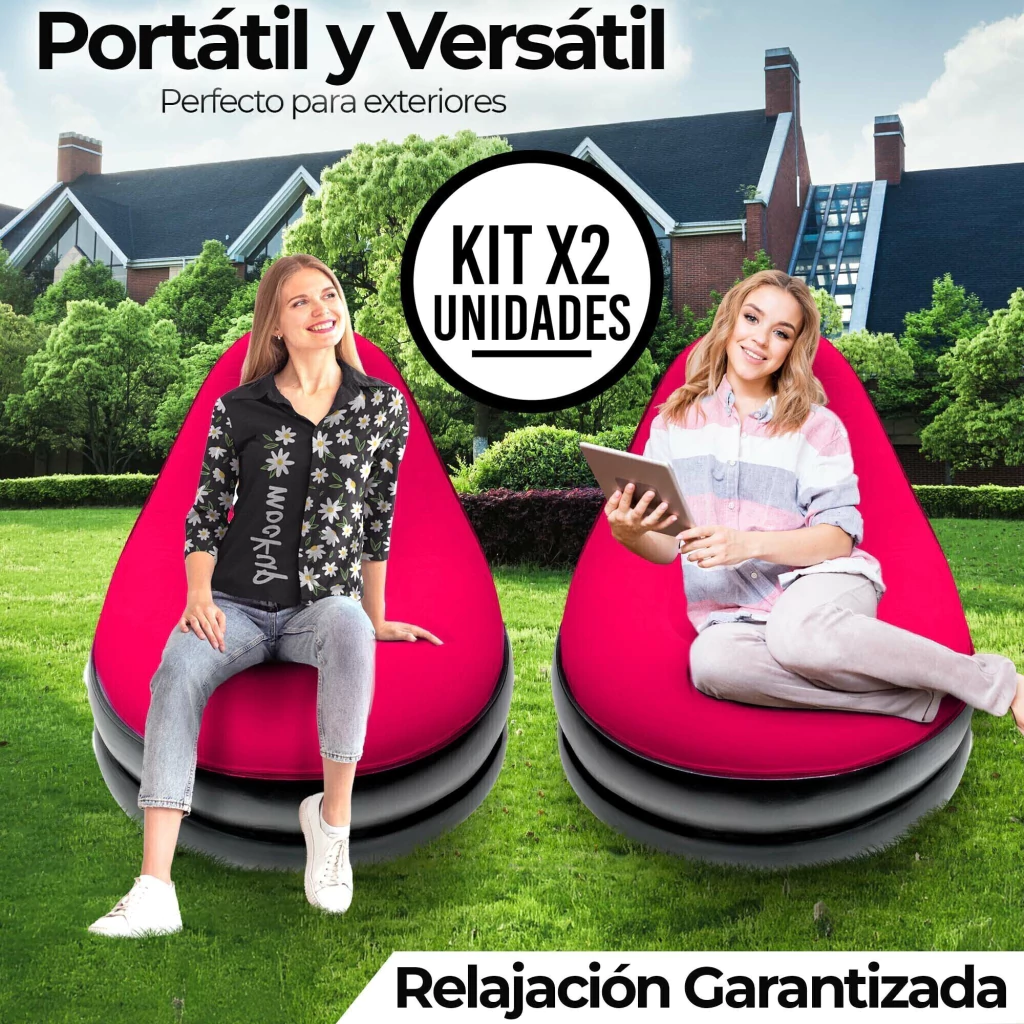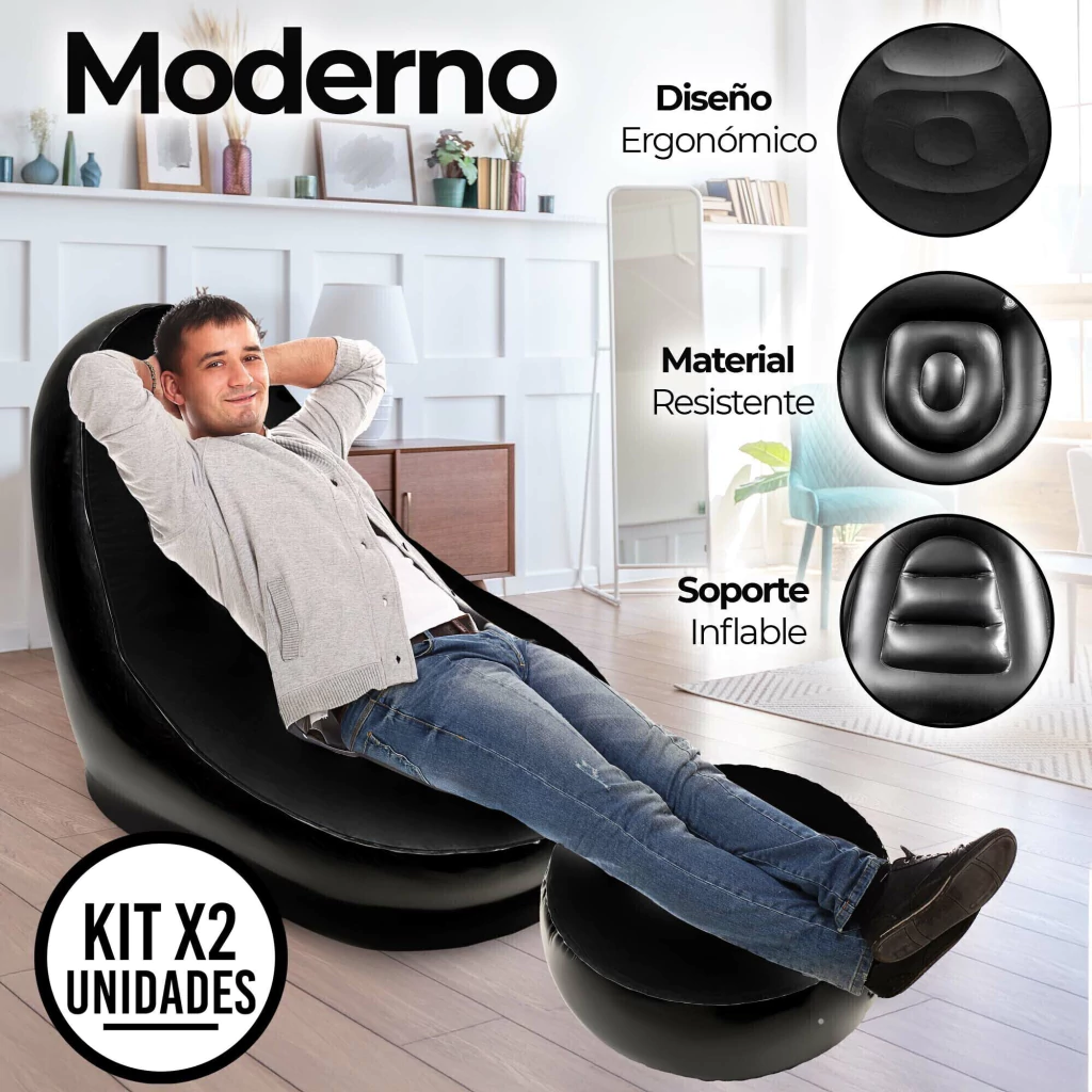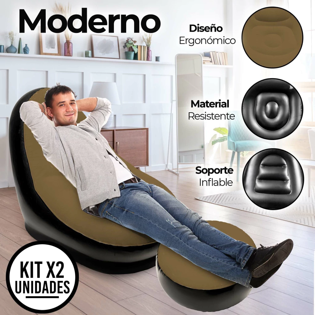 El Set x2 Sofás Inflables Portátiles con Reposapiés e Inflador Eléctrico es la solución perfecta para momentos de relajación en cualquier lugar. ¡No dejes pasar esta oportunidad y adquiere este práctico set para disfrutar del confort a otro nivel! ¡Compra ahora!