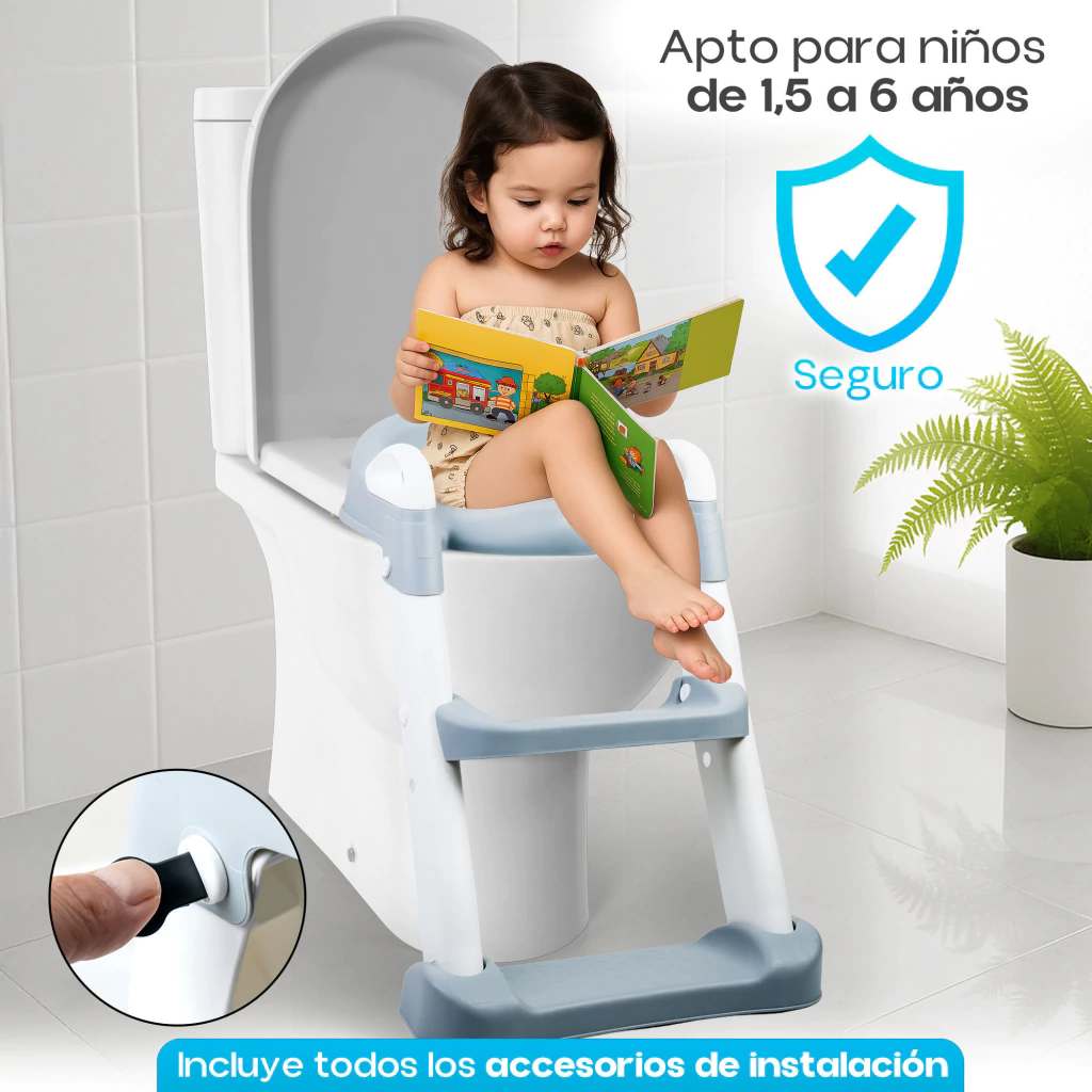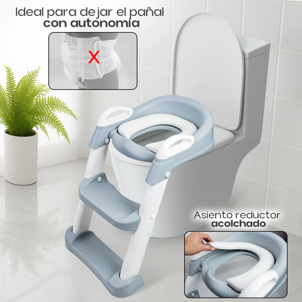 Especialmente pensada para los más pequeños, esta escalera adaptadora les ayuda a dejar el pañal con total autonomía. Su estructura resistente, segura y cómoda se ajusta fácilmente a cualquier inodoro, dándole a tu hijo la confianza que necesita para dar este importante paso.