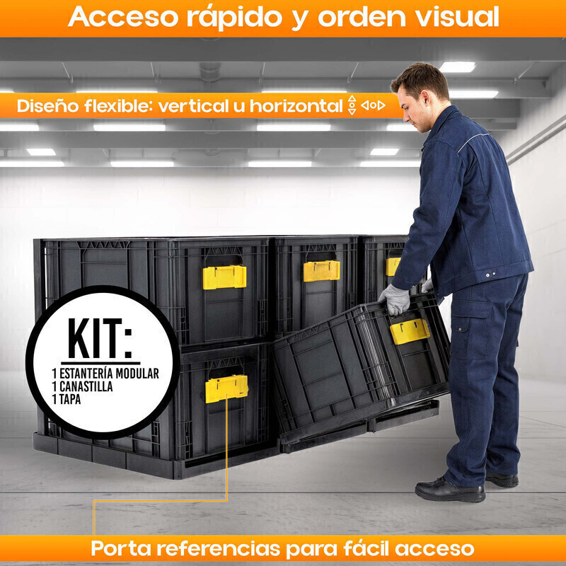 Protección total del contenido: La canastilla de paredes cerradas más la tapa plástica protegen herramientas, piezas o insumos del polvo, la suciedad y salpicaduras.