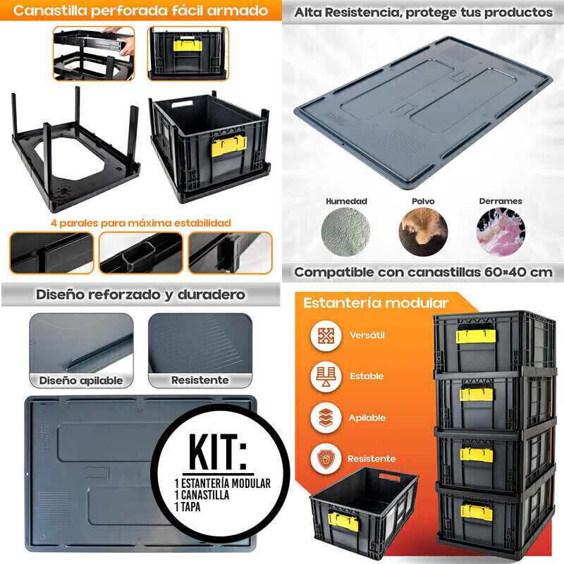 Diseño modular y apilable: Fácil de armar y expandir con estructura sólida gracias a sus parales de ensamble.
