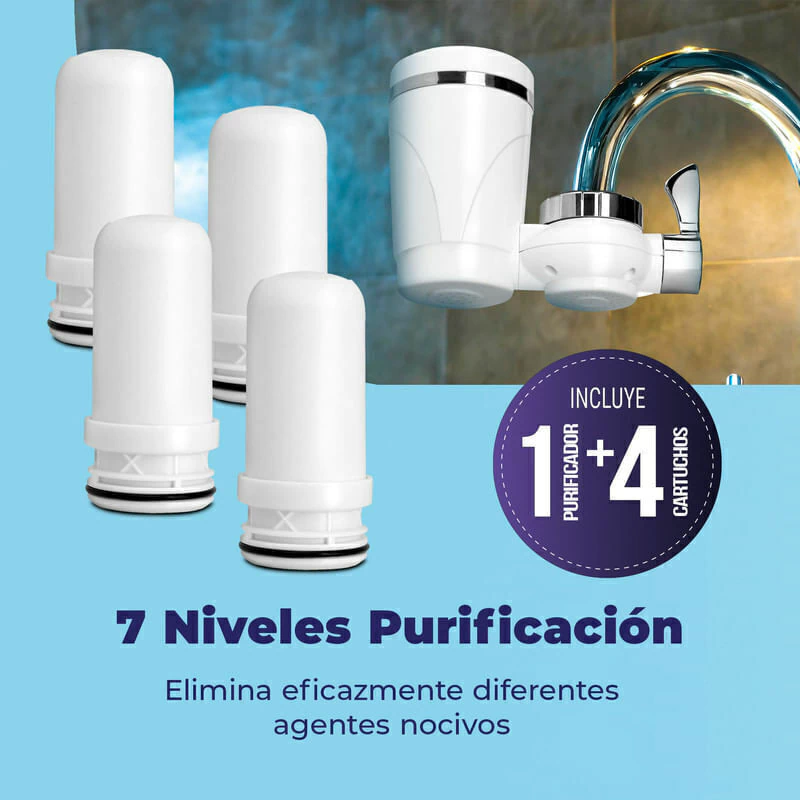 1 Filtro de Agua para Grifo con sistema de 7 niveles de filtración4 Repuestos de filtro cerámico reutilizable