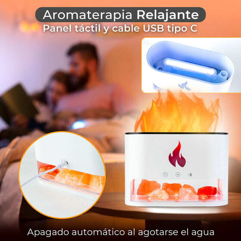 Humidificador y Difusor de Aromas con Efecto Llama y Luces LED: Ambiente Relajante y Estilo Moderno