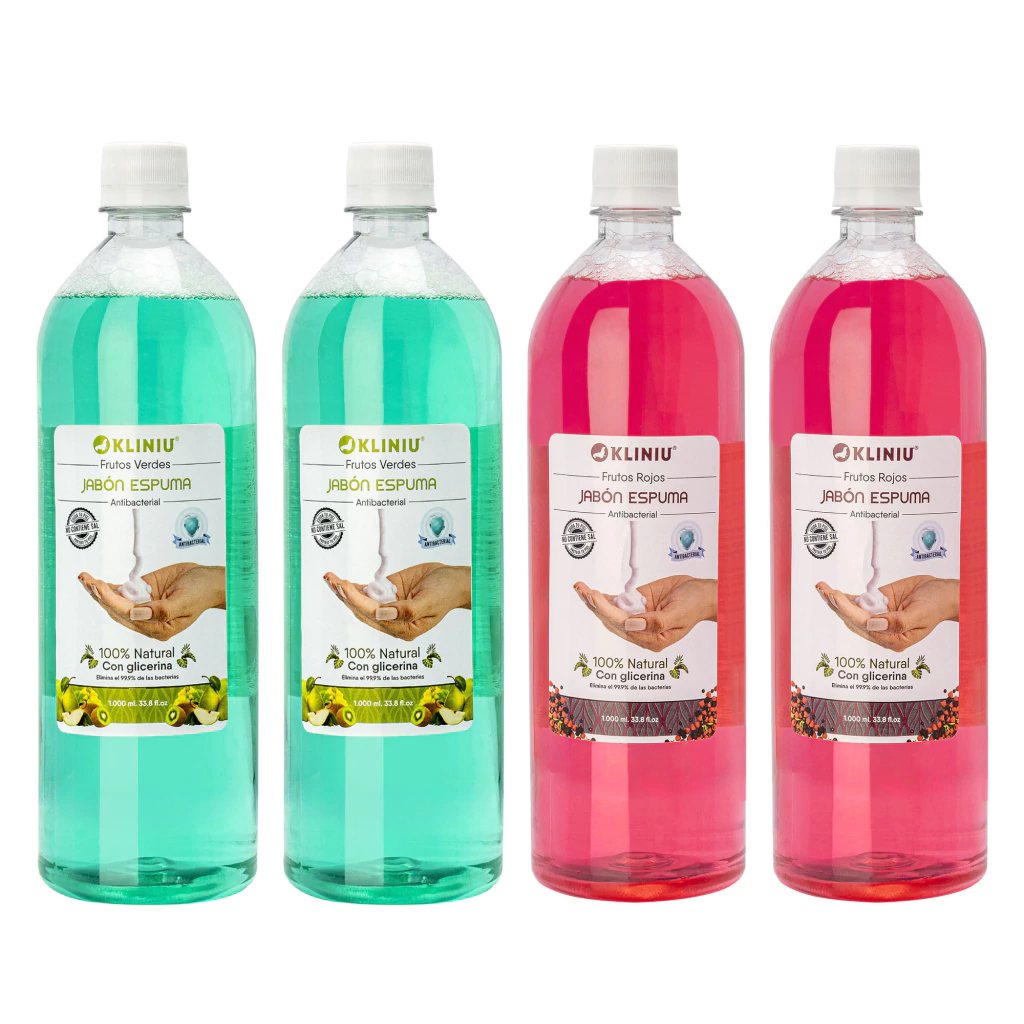 Kit Ahorro: 4 Jabones Espuma Antibacterial 1000ml C/U. Este kit es todo lo que necesitas para mantener tus manos y cuerpo limpios y seguros.