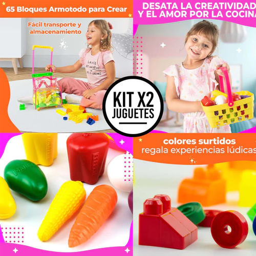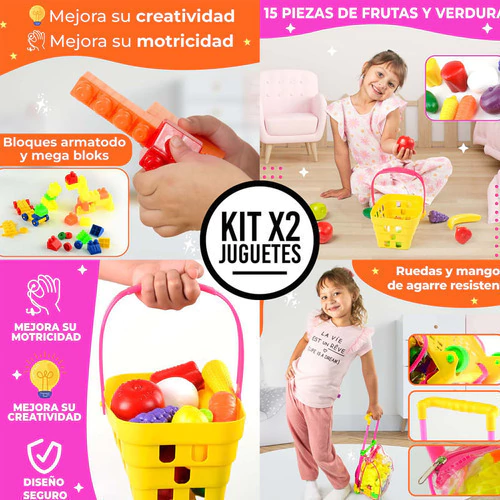 Explora el aprendizaje y la diversión con nuestro Kit de Juego que incluye un Maletero Didáctico con 65 Bloques para crear y aprender, y una Canasta con 15 Frutas de juguete, ideales para introducir a los niños en el mundo de la cocina y la alimentación saludable. Fabricados en Polipropileno, estos juguetes son seguros y duraderos, perfectos para las manitas curiosas.