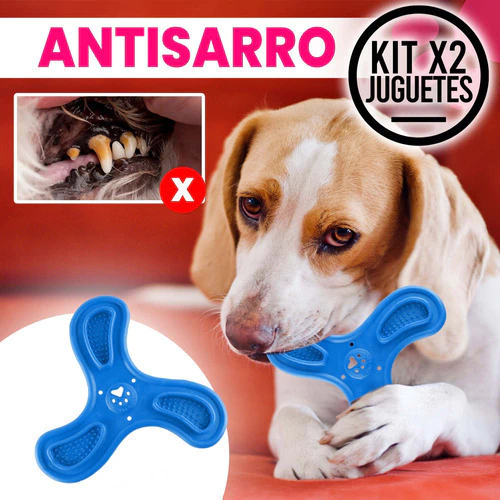Descubre nuestro Kit x2 Boomerang de Goma para Perros en colores azul y rojo.