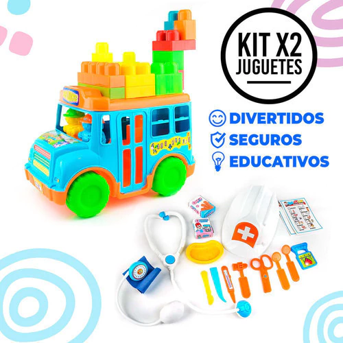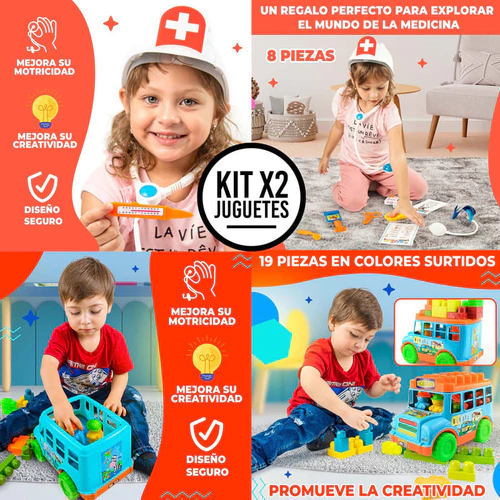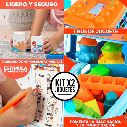 Este combo de Autobús Didáctico y Set Médico no solo proporciona entretenimiento, sino que también es una herramienta educativa valiosa que ayuda a los niños a desarrollar habilidades importantes mientras juegan. Perfecto para regalar en cualquier ocasión, este set promete horas de aprendizaje lúdico y desarrollo de habilidades para niños y niñas.