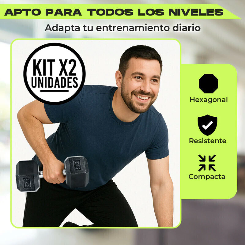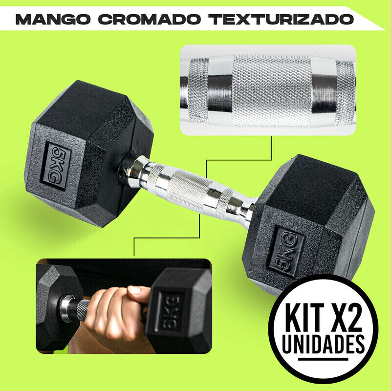 Potencia tu entrenamiento con este Kit de 2 Mancuernas Hexagonales de 5 kg, diseñado para brindarte seguridad, comodidad y máxima efectividad en cada ejercicio. Ideales para fortalecer los músculos, mejorar la resistencia y tonificar el cuerpo, estas pesas cuentan con un recubrimiento de caucho que protege el suelo y reduce el ruido, mientras que su mango ergonómico cromado asegura un agarre firme y antideslizante. Gracias a su diseño hexagonal, evitan rodaduras y garantizan estabilidad en todo momento, siendo perfectas para entrenar en casa o en el gimnasio.