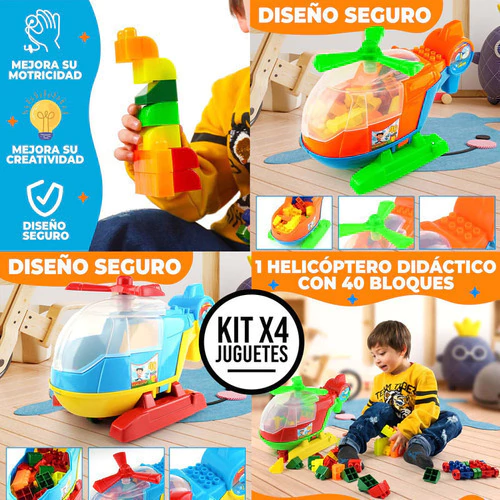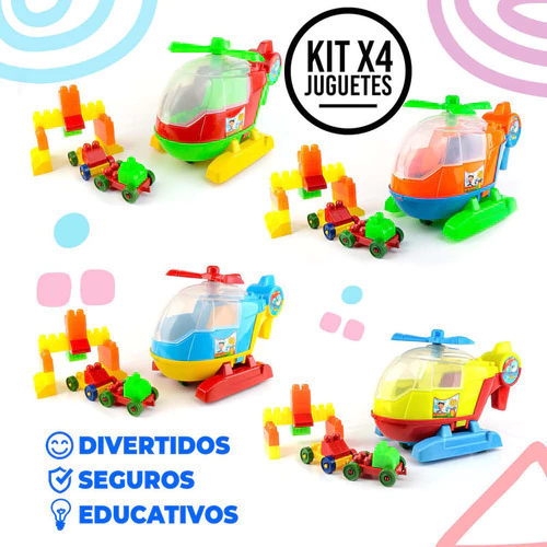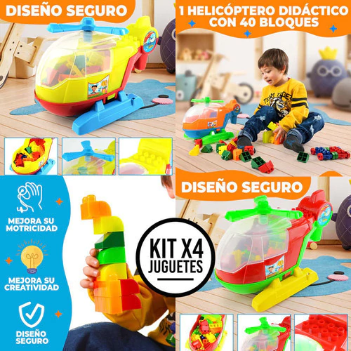Este Kit x4 Helicópteros Didácticos no solo duplica, sino que cuadruplica la diversión y las oportunidades de aprendizaje, siendo el regalo ideal para incentivar el crecimiento intelectual y físico de los más pequeños.