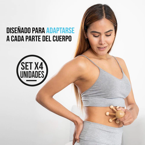 Kit por cuatro masajeadores en madera en forma de pulpo para maderoterapia
