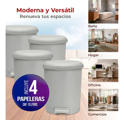 Transforma tus espacios con el Kit x4 Papelera Circular con Pedal 13L Diseño Moderno. Este conjunto de papeleras es la solución perfecta para mantener el orden y la limpieza en diferentes áreas de tu hogar, oficina o baño. Con un diseño moderno y compacto, estas papeleras no solo son funcionales, sino que también aportan un toque de estilo a cualquier ambiente.