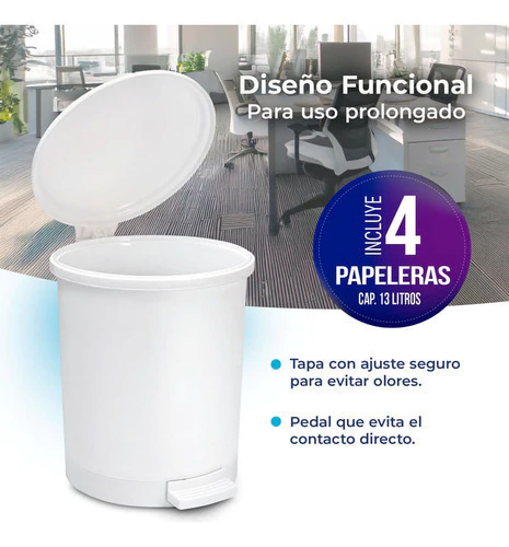 - 4 Papeleras Circulares con Pedal de 13 litros cada una.