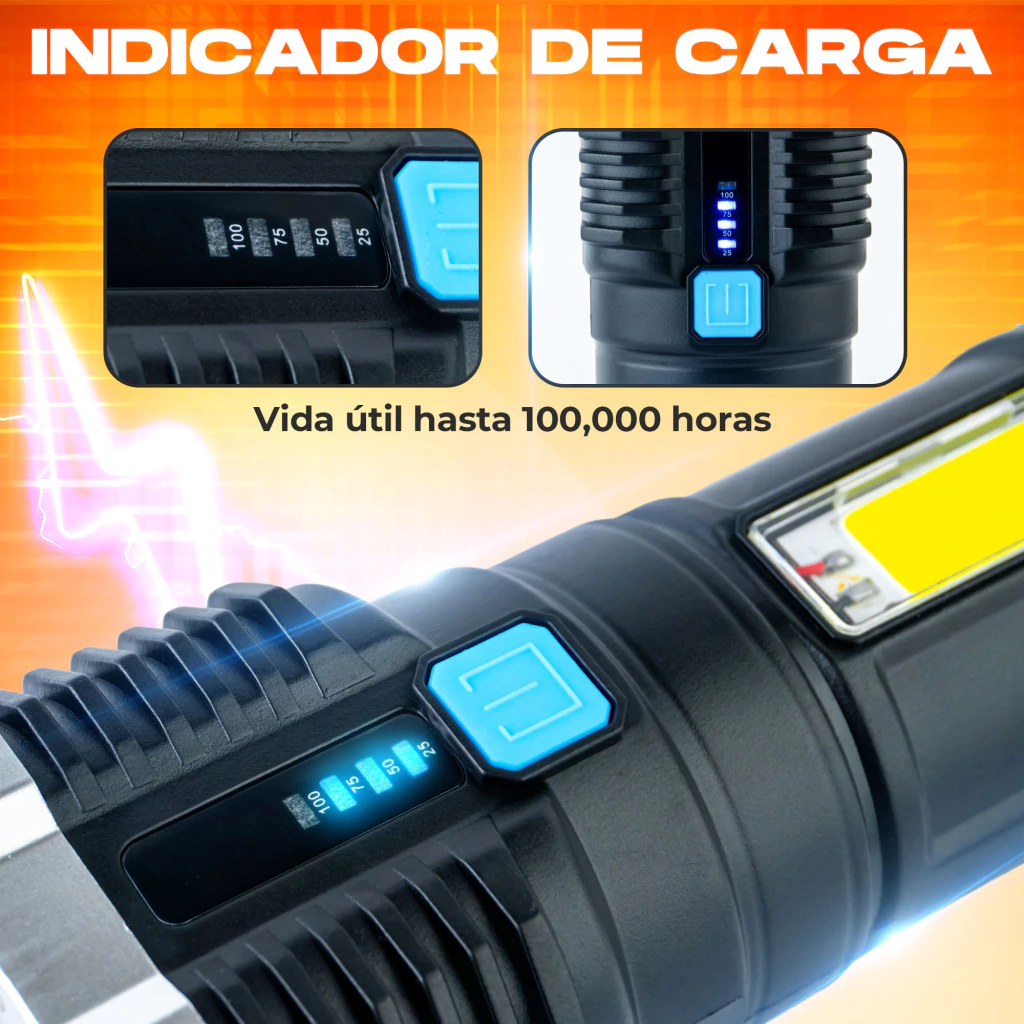 - Iluminación de Alta Tecnología: Con tecnología LED OSL+COB, combina un haz de luz focalizado y brillante para distancias largas (OSL) con una luz amplia y uniforme perfecta para iluminar áreas grandes (COB).