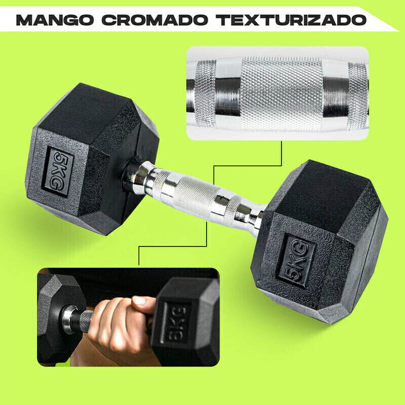 Lleva tu rutina de ejercicios al siguiente nivel con la mancuerna hexagonal de 5 kg, ideal para fortalecer músculos, mejorar la resistencia y tonificar el cuerpo. Diseñada para ofrecer la mejor experiencia de entrenamiento, esta pesa combina un recubrimiento de caucho que protege el piso y reduce el ruido con un mango ergonómico cromado que proporciona un agarre seguro y cómodo. Su diseño hexagonal evita que ruede, garantizando estabilidad en cada repetición y facilitando su almacenamiento. Perfecta para entrenar en casa o en el gimnasio, es una herramienta imprescindible para quienes buscan resultados efectivos y duraderos.