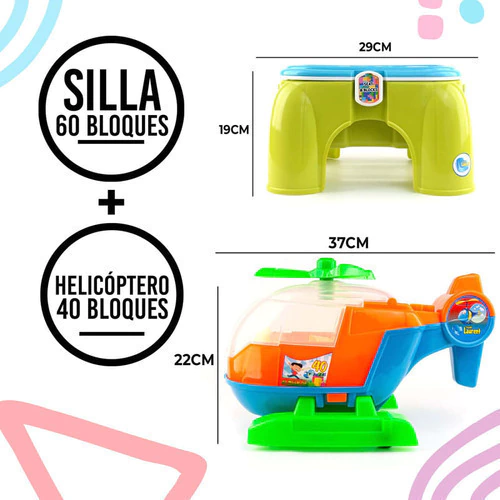 Impulsa el aprendizaje y la diversión de tus hijos con nuestro Pack Creativo: Silla Didáctica 60 Piezas + Helicóptero Infantil, un combo especial diseñado para estimular el desarrollo cognitivo, la creatividad y las habilidades sociales de los más pequeños. Este set, fabricado con Polipropileno de alta calidad, es perfecto para proporcionar horas de entretenimiento educativo y seguro.
