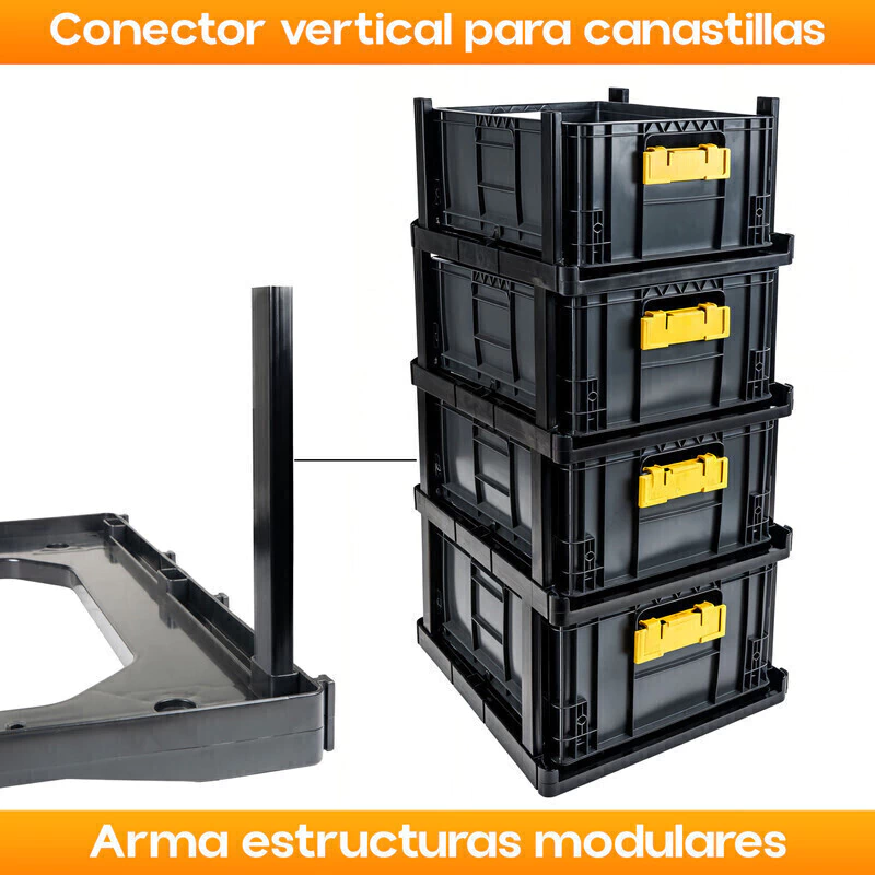 Uso: Unión vertical entre base y canastillas o entre niveles de canastillas apiladas