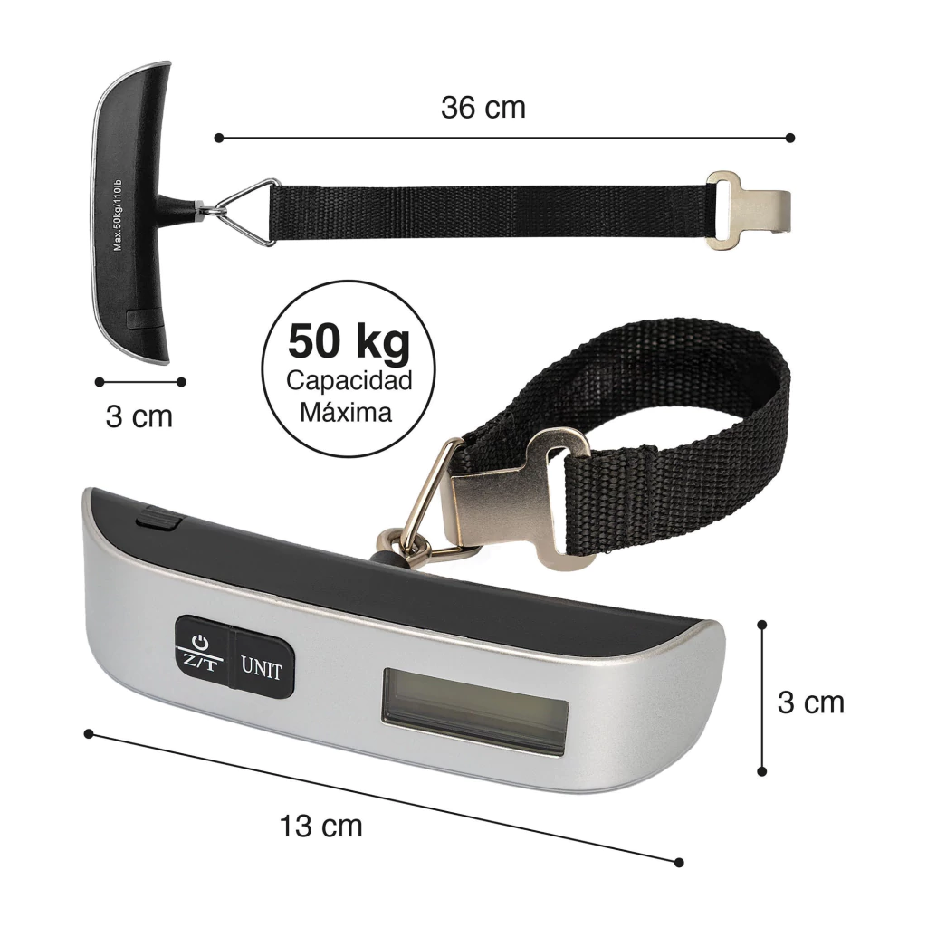 Equipaje Báscula Portátil! Con esta práctica herramienta puedes pesar tu equipaje de forma rápida y precisa antes de llegar al aeropuerto, evitando cargos extra por exceso de peso. Su diseño compacto y portátil te permite llevarla fácilmente en tu maleta o bolso de mano.