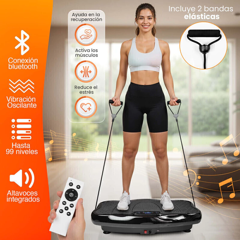 Plataforma Vibratoria Grande de Ejercicio con Bandas y Control