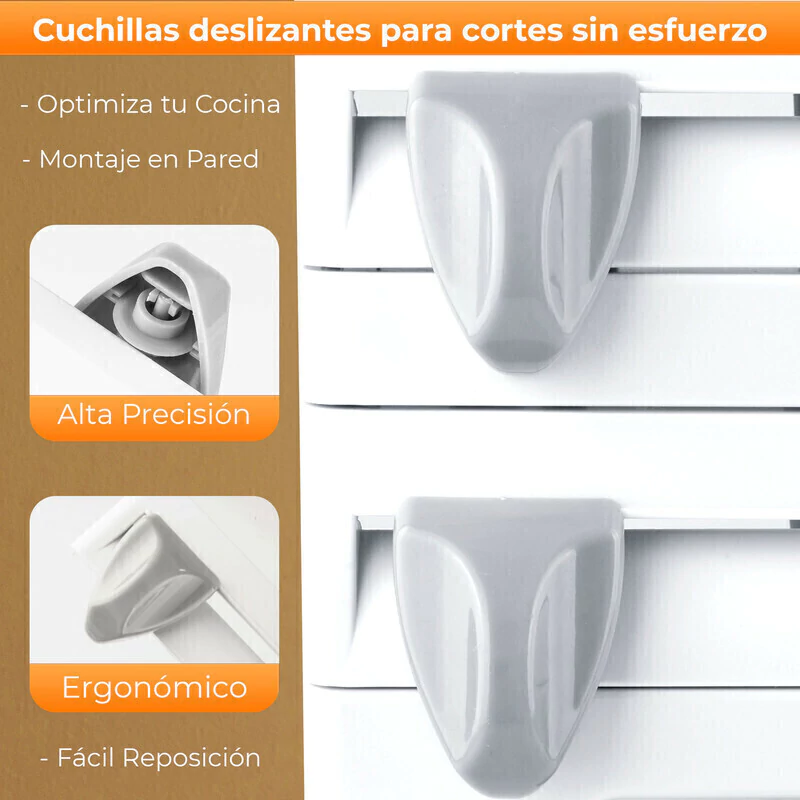 - Incluye: Porta rollos 4 en 1, cuchillas deslizantes para aluminio y film plástico, accesorios de instalación.