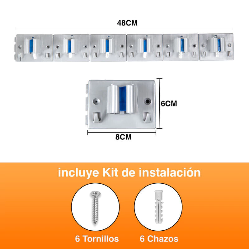 Con el Portaescobas Multisoporte x6 con 12 Ganchos tendrás máxima capacidad de organización para tu hogar u oficina. ¡Haz tu pedido ahora y disfruta de un espacio más limpio, práctico y ordenado!