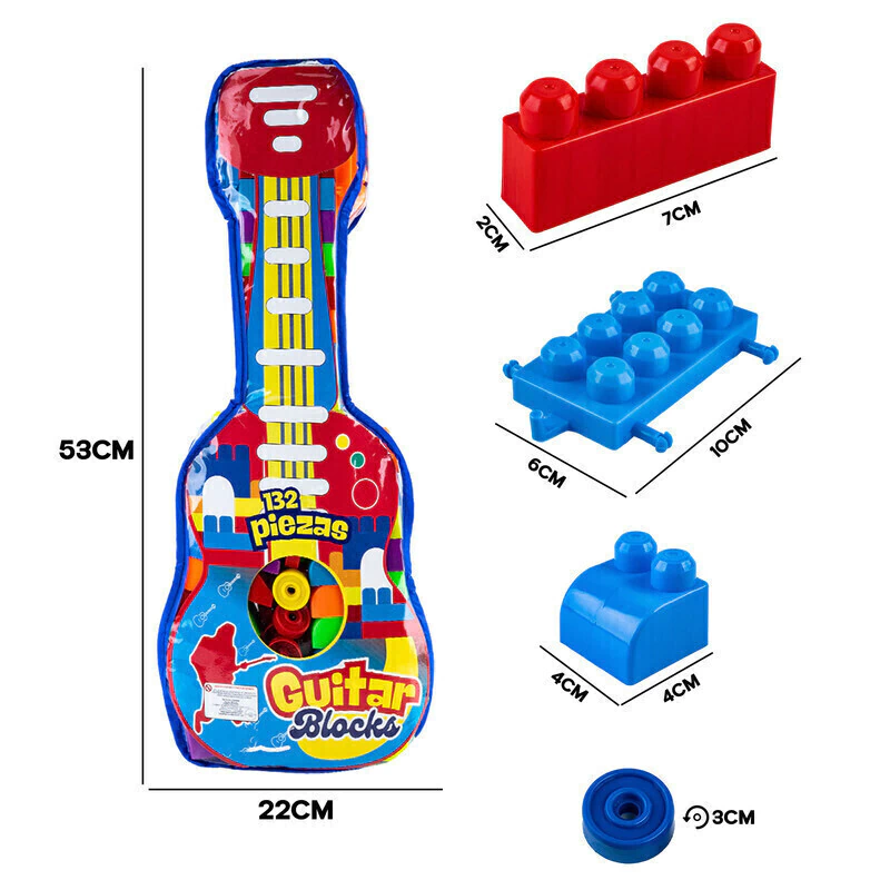 ¡Diversión y creatividad aseguradas! El Set Bloques Construcción 132 Piezas Maleta Guitarra Infantil es ideal para que los niños mayores de 3 años exploren su imaginación construyendo todo lo que sueñen. Con fichas grandes y coloridas, es perfecto para jugar en casa o llevar a cualquier lugar.