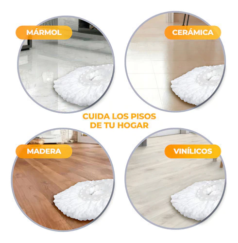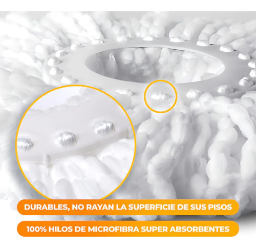 Los repuestos de mopa giratoria son diseñados con 100% microfibra de alta calidad, asegurando una larga vida útil y pueda ser reusado la mayor cantidad de veces posibles.
