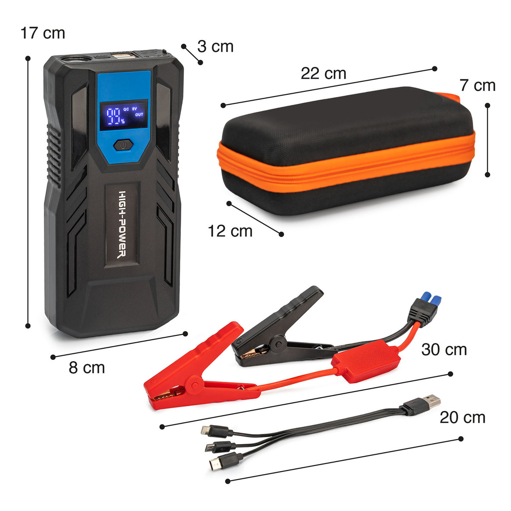 No dejes que una batería descargada arruine tus viajes. Con el Set de 2 Arrancadores Portátiles para Batería de Carro 12V con Power Bank, tendrás una solución confiable para encender tu vehículo en segundos y además podrás cargar tus dispositivos móviles en cualquier momento. Potentes, compactos y fáciles de usar, son el accesorio esencial para todo conductor.