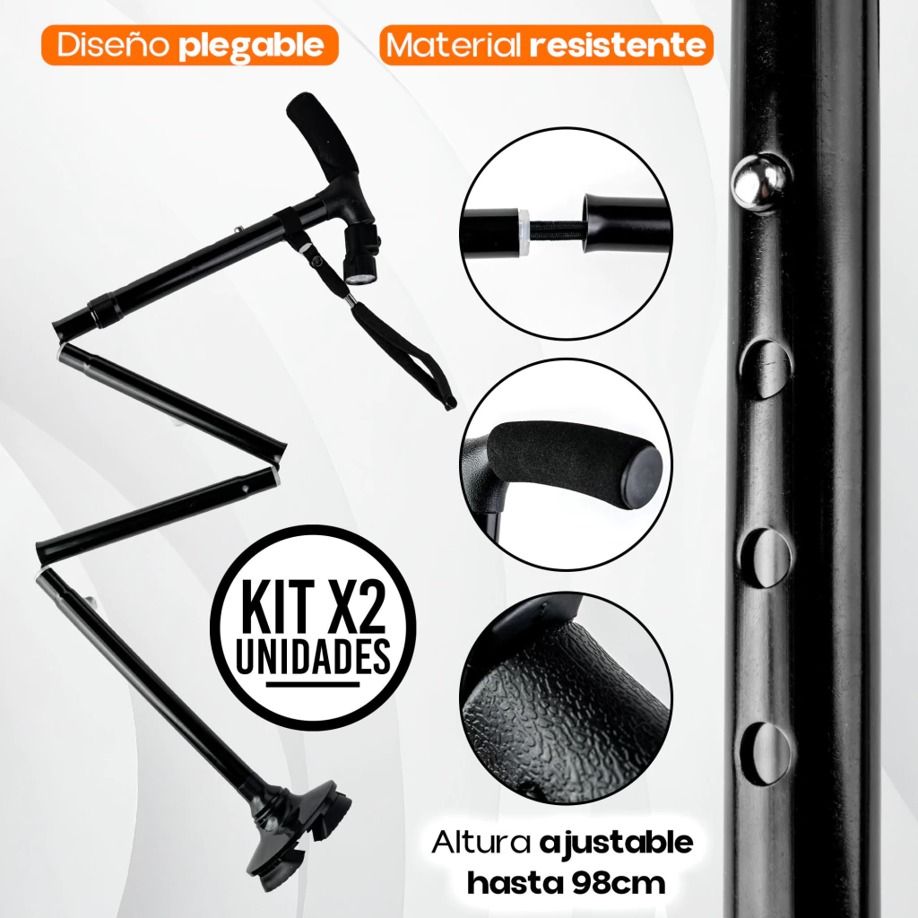 - Altura Ajustable y Plegable, diseñado para ofrecer estabilidad, confort y funcionalidad en cada paso. Ideal para personas mayores, en rehabilitación o con movilidad reducida, este bastón combina tecnología, ergonomía y estilo en un solo producto.