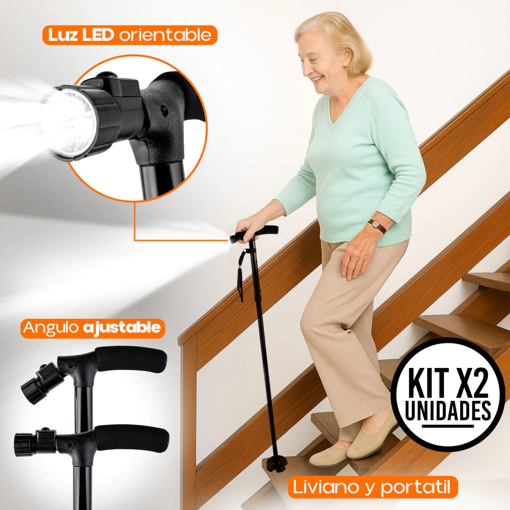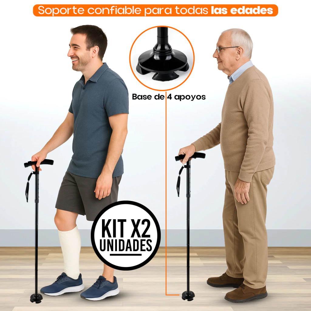 Recupera tu independencia y camina con total seguridad gracias al Set x2 Bastón 4 Patas con Luz LED
